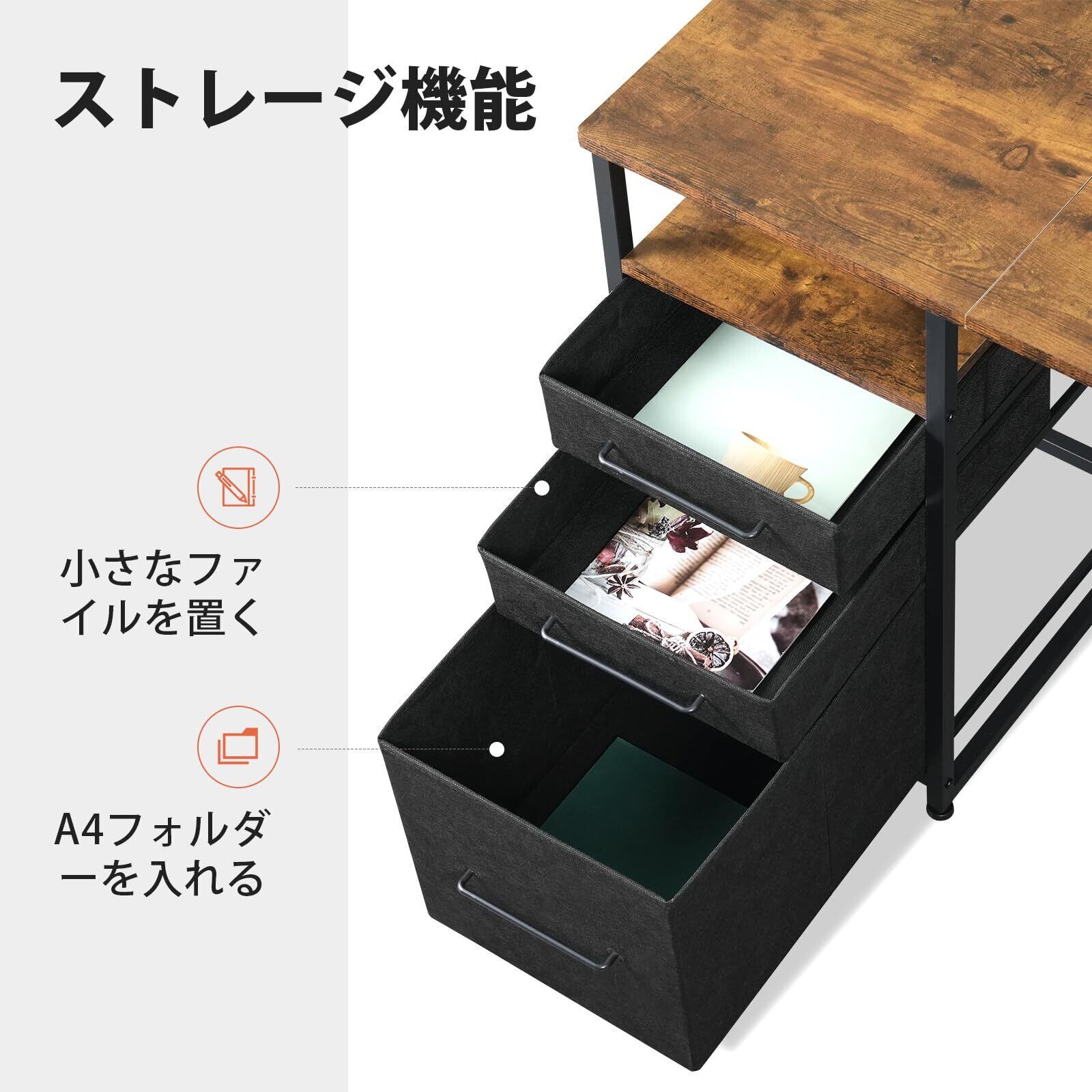 【最強な収納機能】サイドラック、サイド袋、引き出しも装備していますので、本、辞書、CDなどの収納はとても便利です。収納一体型で空間利用率UP!。仕事用はもちろん、子供の勉強机としてもベストチョイスです。