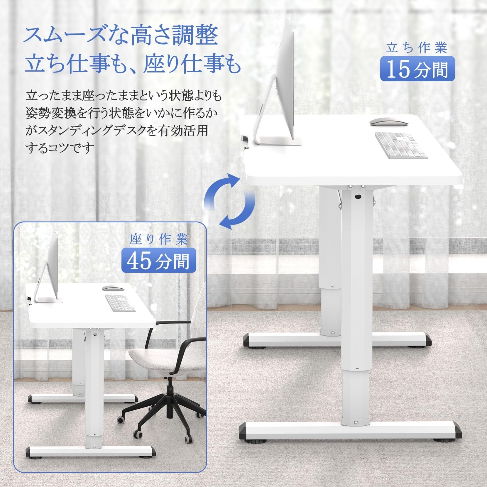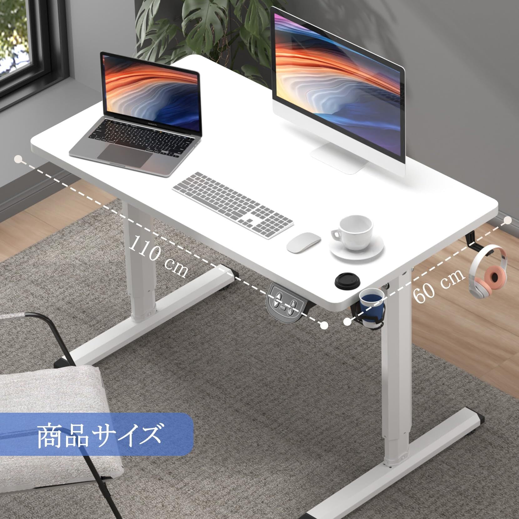 Dripex 昇降デスク 電動 幅110cm 一枚天板 簡単組立 スタンディングデスク メモリー機能付き 人間工学 パソコンデスク 無段階高さ調節 オフィスワークテーブル 高さ調節デスク 耐荷重80KG メモリー機能 収納フック付き メーカー3年 パソコンラック PCデスク 安定自動昇降(110 x 60 cm 白)