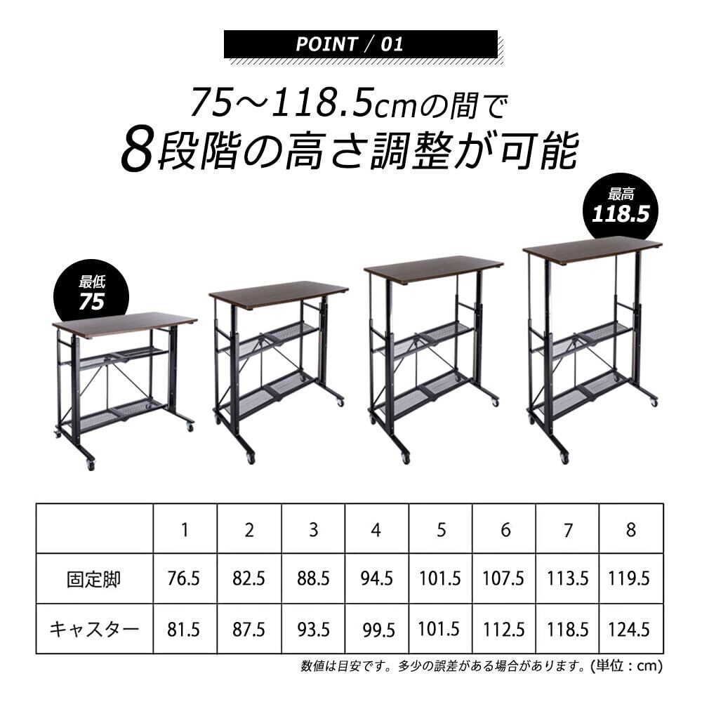 E-WIN スタンディングデスク 昇降デスク 【届いてすぐ使える!】 折りたたみ 手動 キャスター(固定脚)取付けだけの簡単組立 天板:幅91.5cm×奥行51㎝ 高さ調整 ダイニング 在宅 テーブル ブラウン SD92-BK