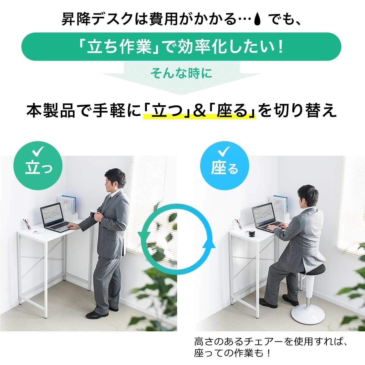 高さ100cmのスタンディングデスクです。立って作業することで“座りすぎ”を防止。「集中力アップ」「腰・肩への負担軽減」「カロリー消費アップ」などのメリットがあります。