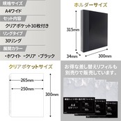 【カラー】クリア 【サイズ】[マガジンファイル:サイズ:縦315mm×横300mm×背幅34mm / A4変形ワイド / 30穴リング式バインダー] ・ [クリアポケット:縦300mm×横265mm(収納サイズ:縦300mm×横250mm) A4変形ワイド / 30枚入り/30穴(2穴、4穴リング対応)] 【おススメの収納用途】アイドル誌 アニメ ファッション 新聞 映画 コスメ 料理 音楽 雑誌などにその他にも、A4ファイルには入らない厚手資料の書類整理や、DVDやCDの初回特典グッズやチラシ、サイン、ポストカード、フライヤー、年賀状やお手紙の保存などにも使えます。