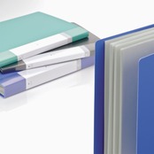 オフィスだけでなく、パーソナルにも使える鮮やかなカラーリング。ポケット固定式。