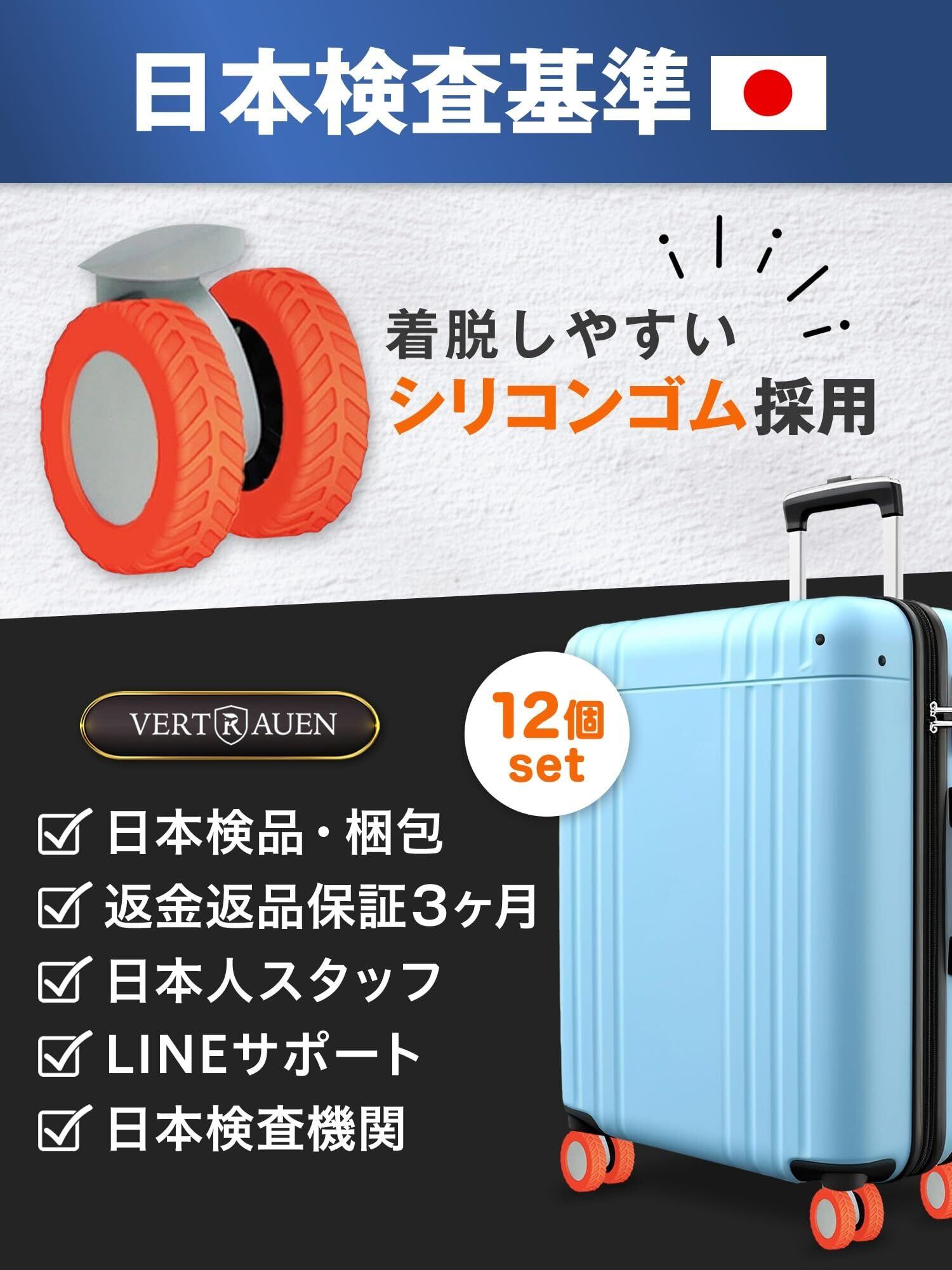 【元CA監修12個セット 快速護輪】 VERTRAUEN キャスターカバー スーツケース タイヤカバー キャリーケース 車輪カバー 脱落防止 車輪保護 騒音低減 シリコンゴム ホイールカバー 滑り止めテープ 貼り付けタイプ かいそくごりん (はめ込み式, フレイムオレンジ(12個入り))