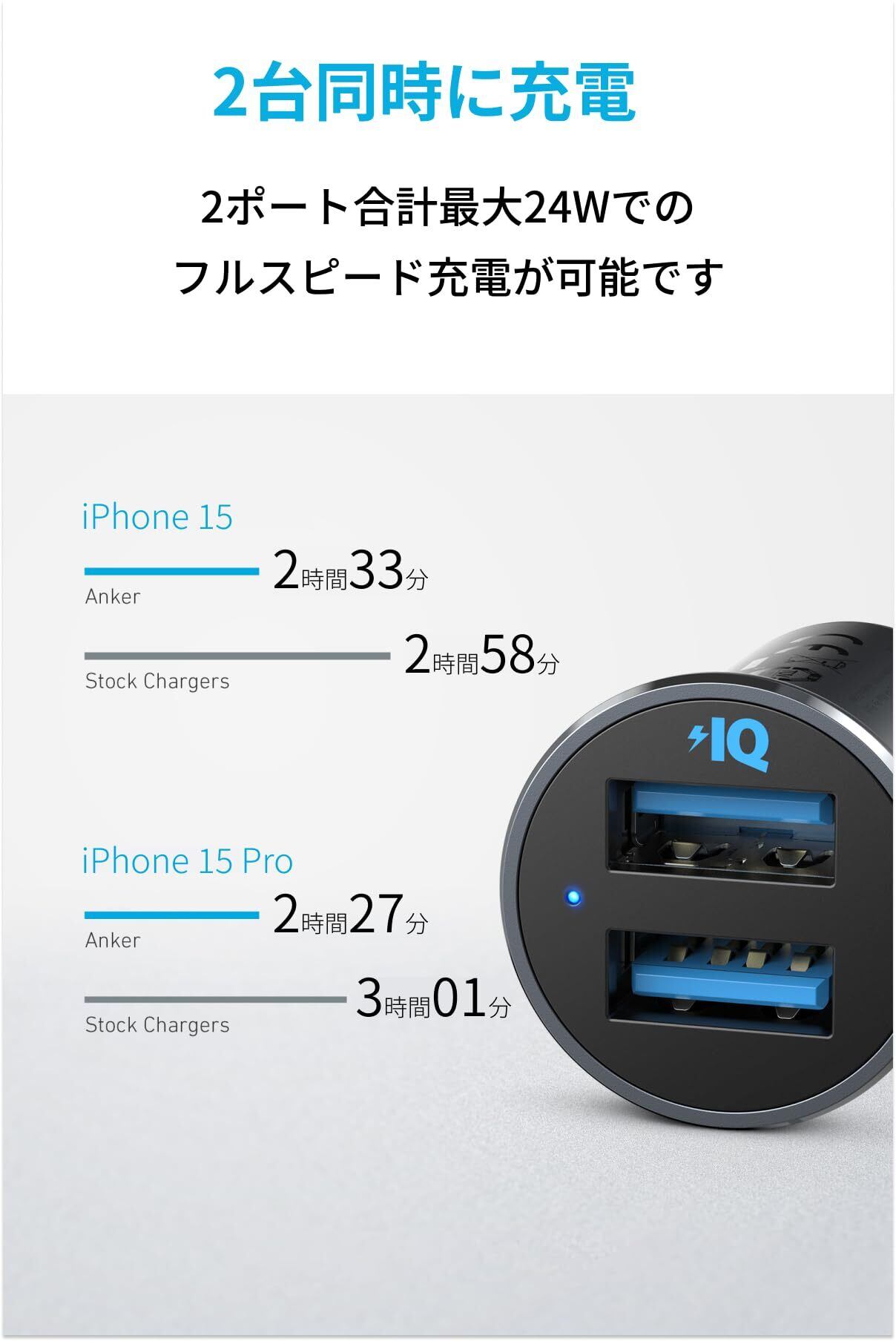 Anker PowerDrive Speed 2/24W/2ポート/カーチャージャー/PowerIQ対応/iPhone/iPad/Android各種対応