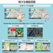 【オービス案内・昼夜画面切替・文字サイズの変更】登録されているオービス設置ポイントに近づくとアイコン表示と音声で案内します。「自動切替」に設定すれば、時刻によって昼・夜画面を自動的に切替ます。地図の縮尺変更とは別に地名や交差点位置などの文字サイズを3段階から選択可能です。