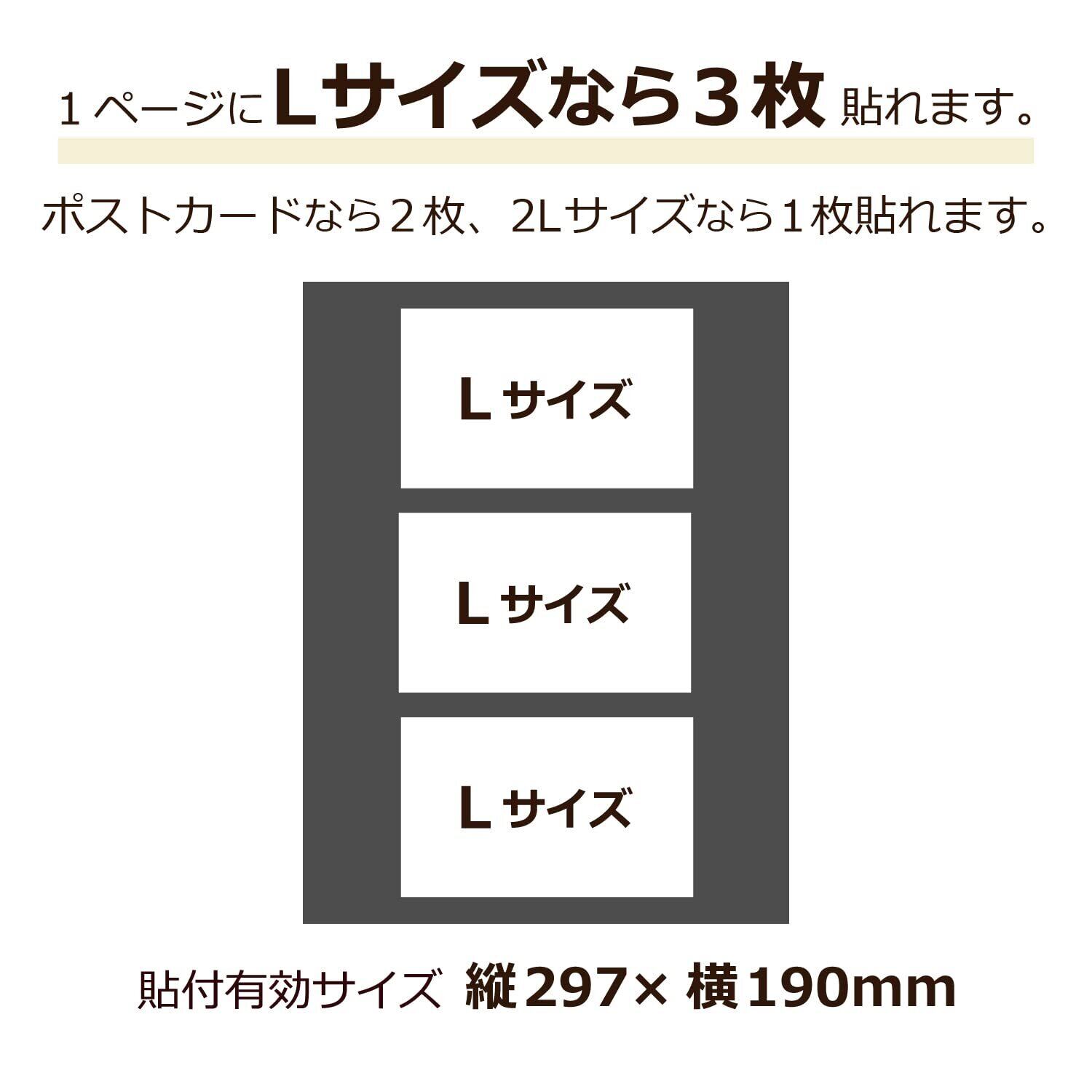 1ページにLサイズなら3枚、ポストカードハイビジョンパノラマなら2枚、2Lサイズなら1枚の写真が貼れます。
