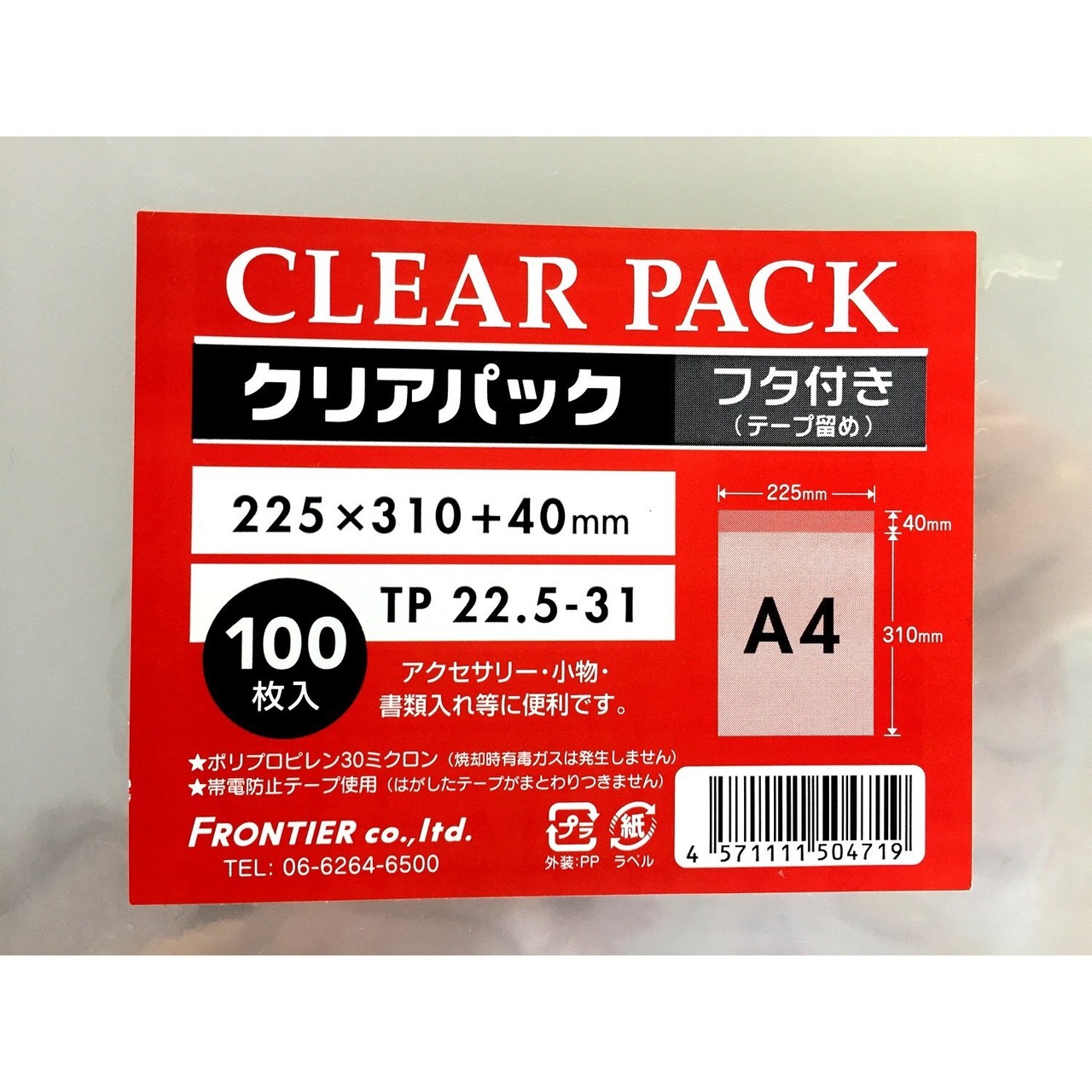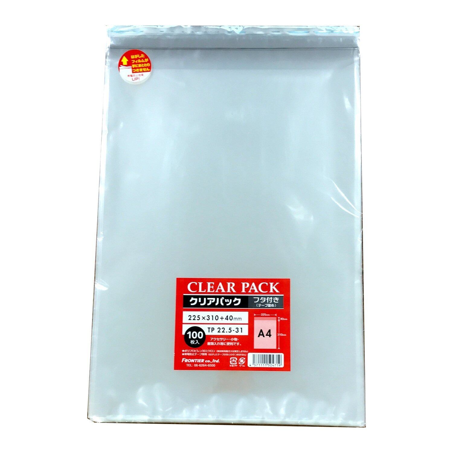 フロンティア カクケイ OPP袋 クリアパック フタ付 テープ付 30μ 100枚 TP22.5-31