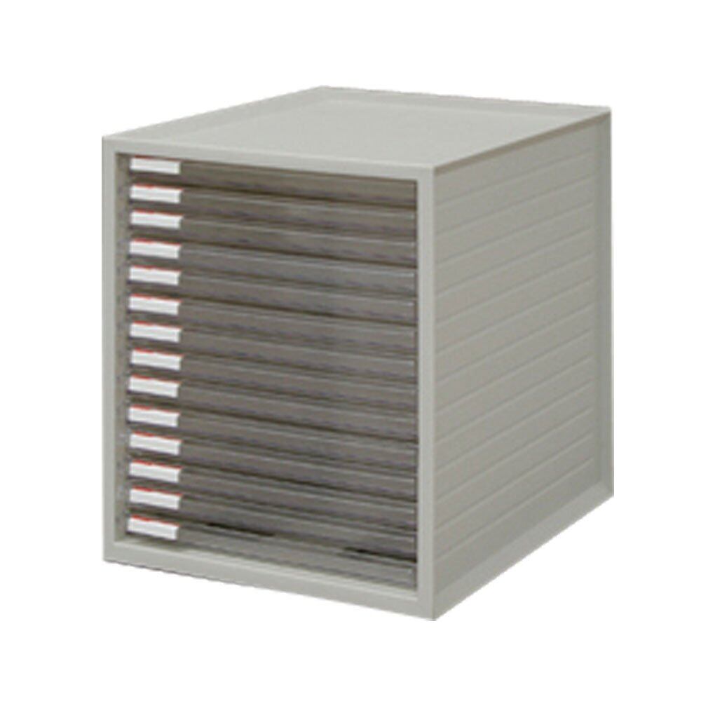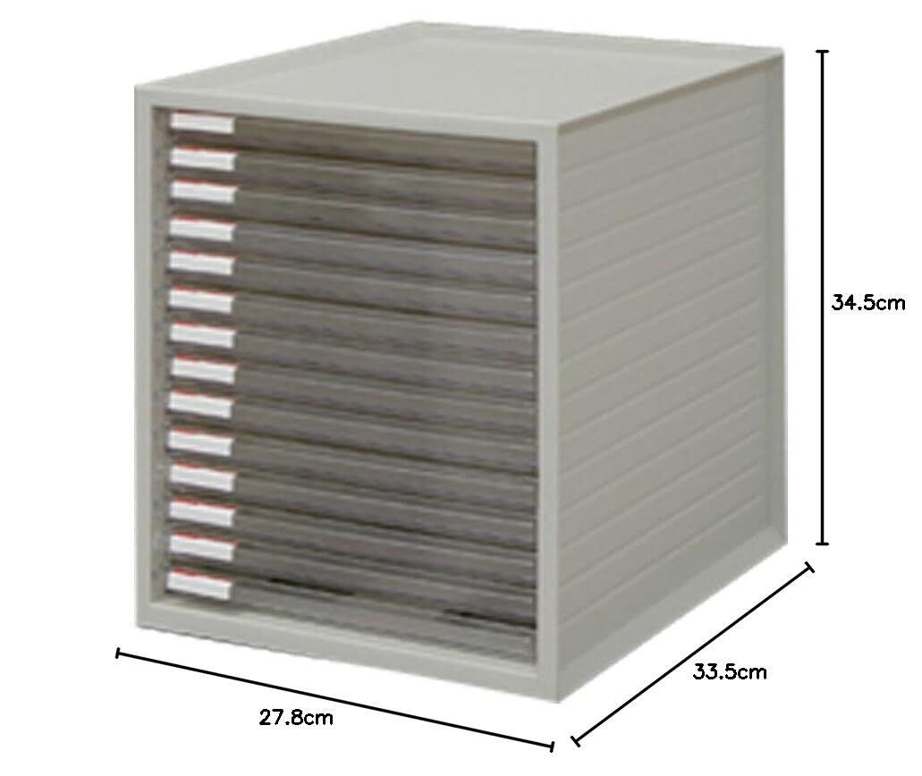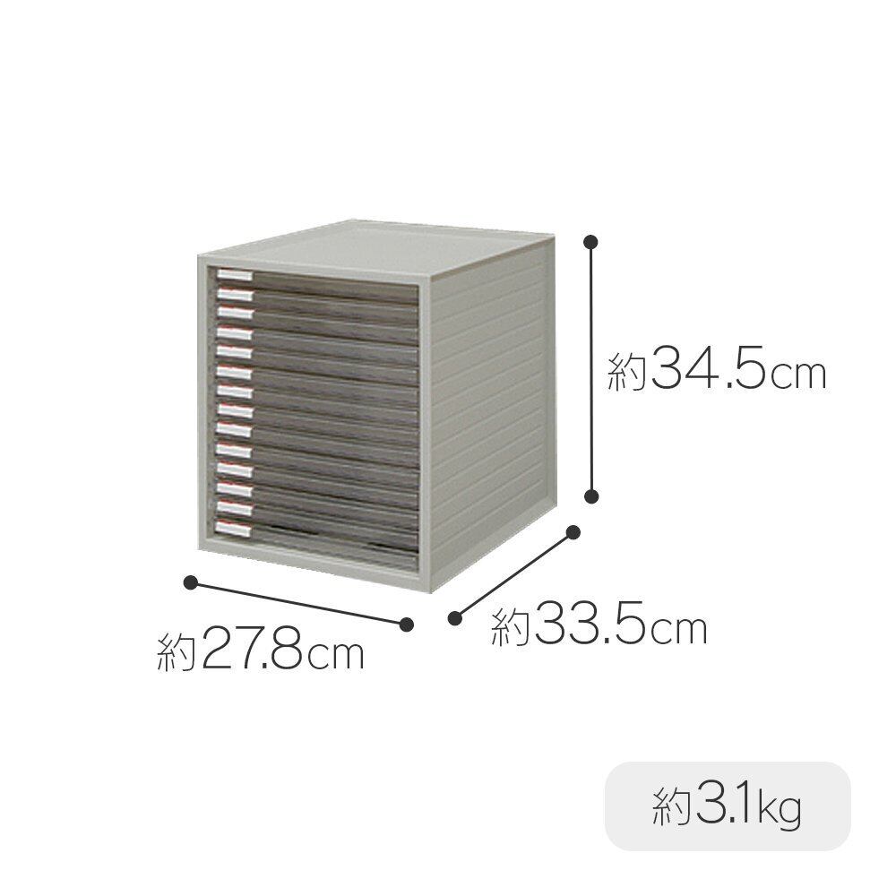 浅型14段の収納ケースで書類を細かく分類可能。A4クリアファイルも収納できるのでデスク周りもすっきり。天板はメモやペンなどを置けるような形状のためちょっとした小物置き場に。