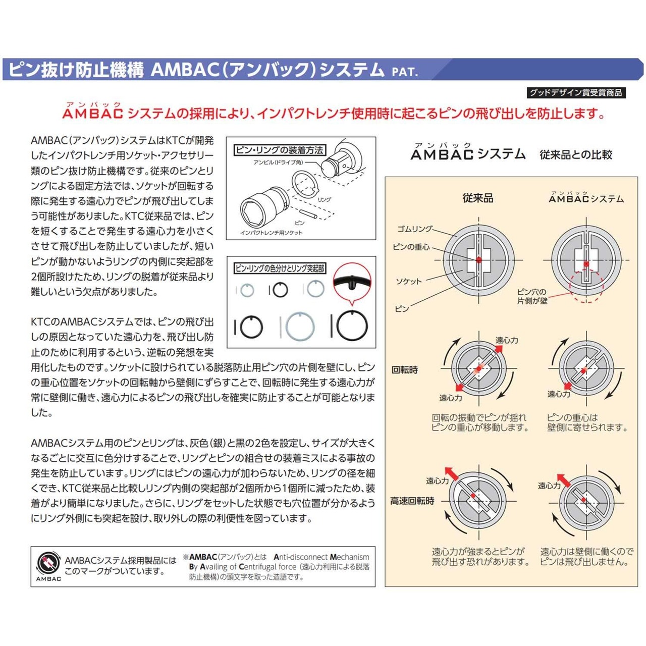 AMBAC(アンバック)システムの採用により、インパクトレンチ使用時に起こるピンの飛び出しを防止