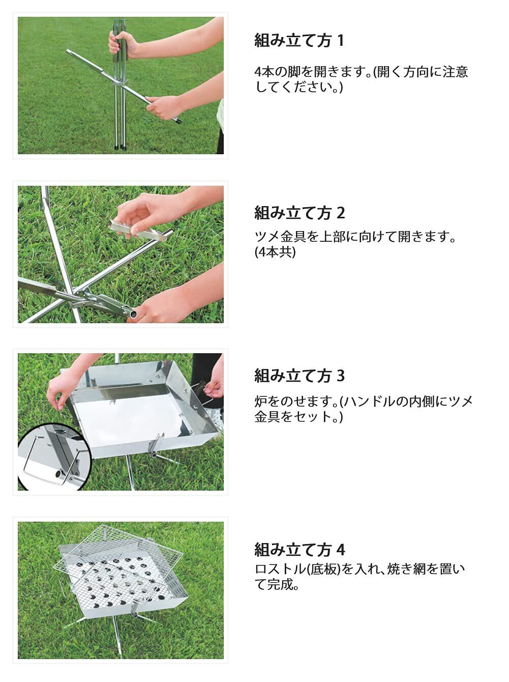 ユニフレーム ファイアグリル(683040) ・サイズ:(使用時)430×430×網高330mm、(収納時)380×380×70mm ・材質(炉/ロストル)ステンレス鋼、(スタンド/焼網)鉄/クロームメッキ ・重量:約2.7kg ・分散耐荷重:約20kg
