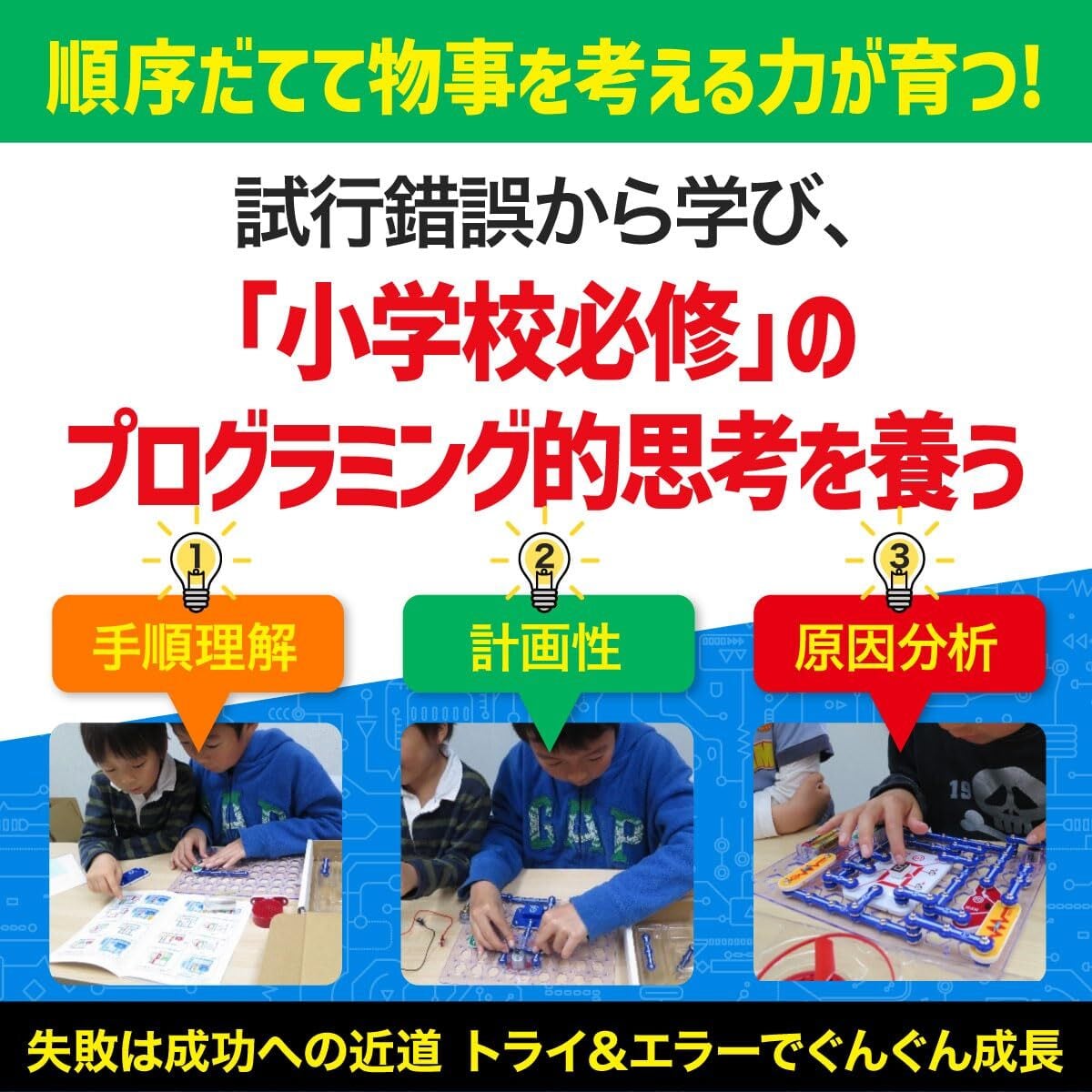 【難しいハンダ付け不要】パーツをスナップで止めながらつなげば電子回路が完成。お子さまだけでも安全に実験ができます。