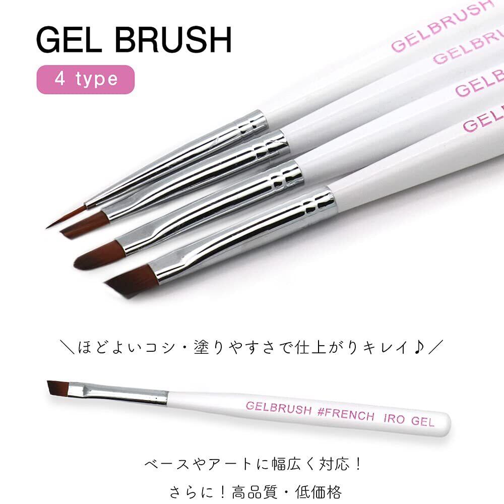 ジェルネイル 筆 4種セット(ホワイト) ネイルブラシ ジェルネイル ブラシ ネイル ブラシ iro gel (イロジェル)