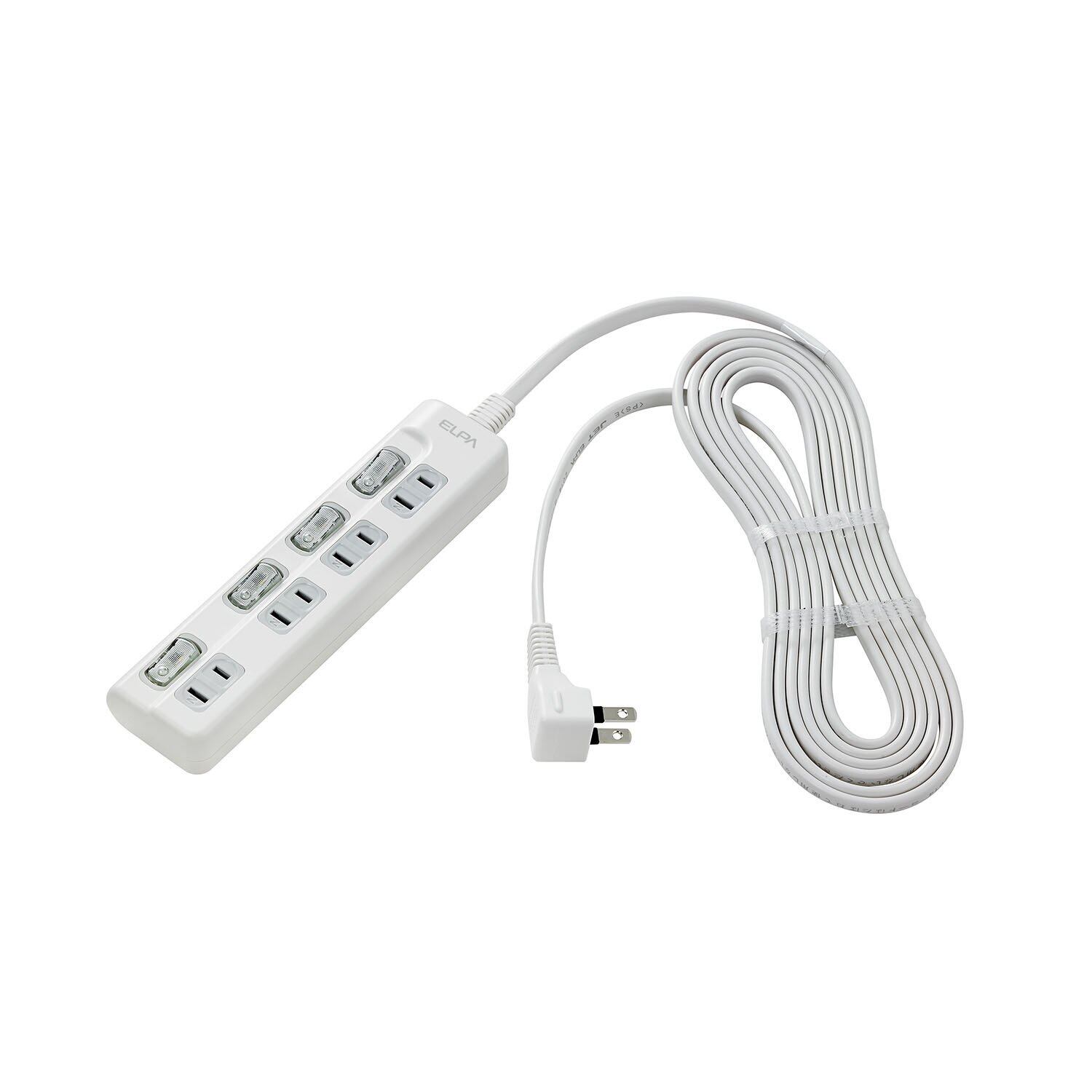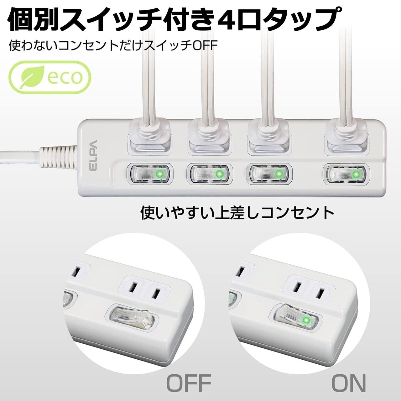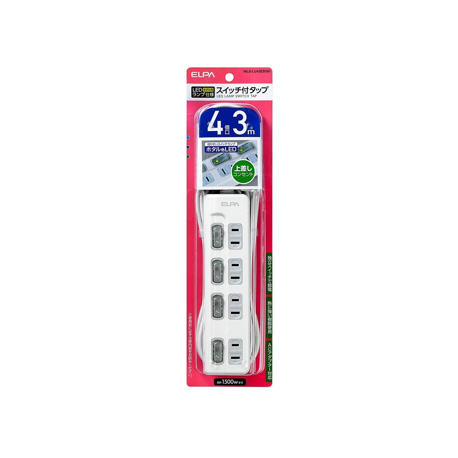 エルパ(ELPA) スイッチ付タップ コンセント 延長コード LED 上差し 4個口 3m WLS-LU43EB(W)