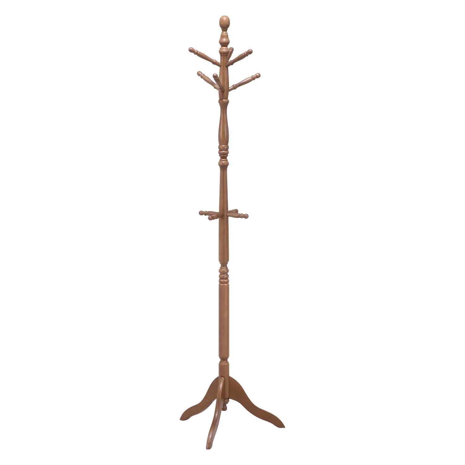 不二貿易 コートハンガー ハンガーラック スリム 木製 幅50.8×奥行43×高さ183cm ダークブラウン 3段フック 玄関 10264