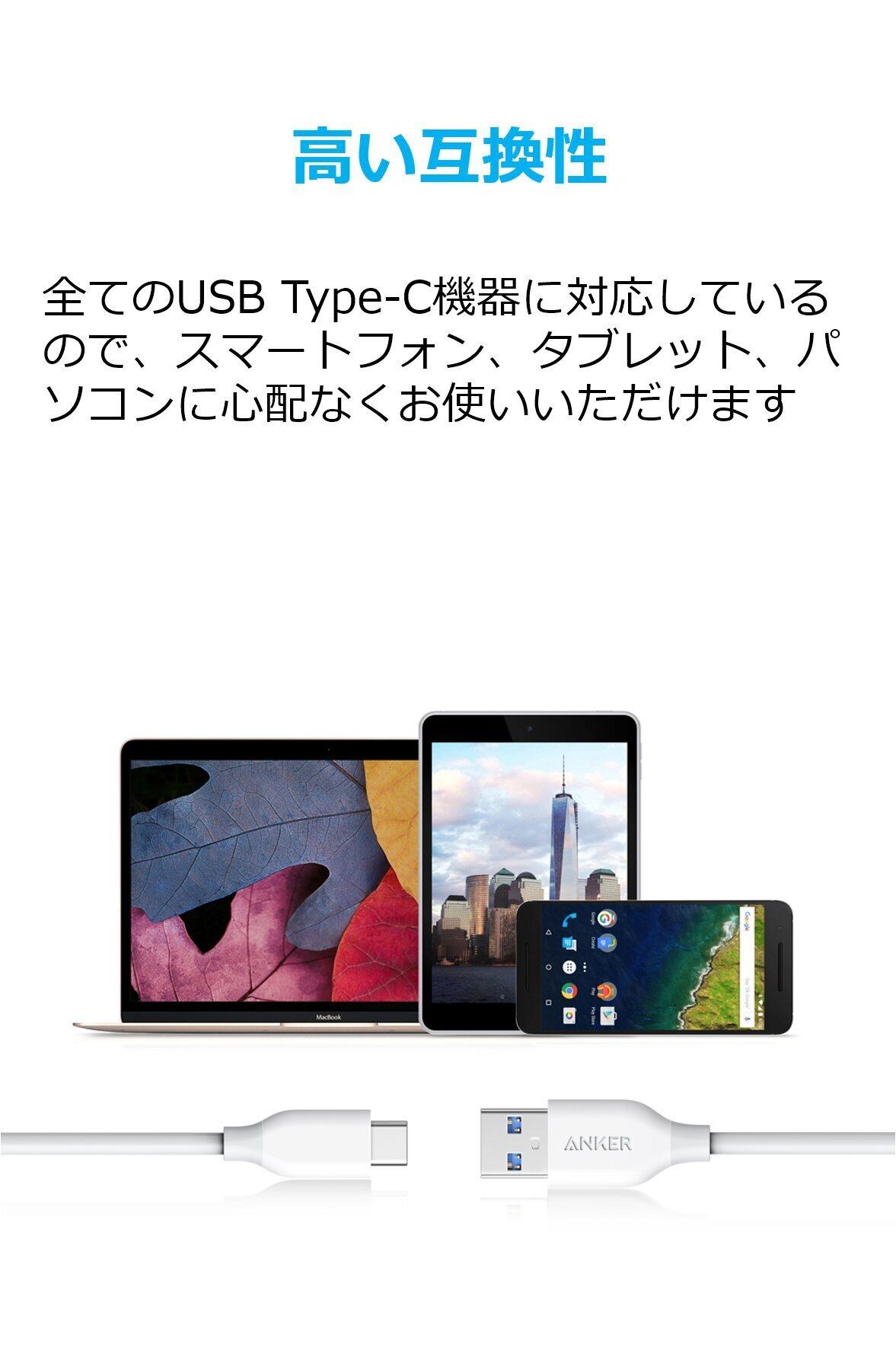 Anker USB Type C ケーブル PowerLine USB-C & USB-A 3.0 ケーブル iPhone 16 / 15 /Xperia/Galaxy/LG/iPad Pro/MacBook その他 Android 等 USB-C機器対応 テレワーク リモート 在宅勤務 0.9m ホワイト