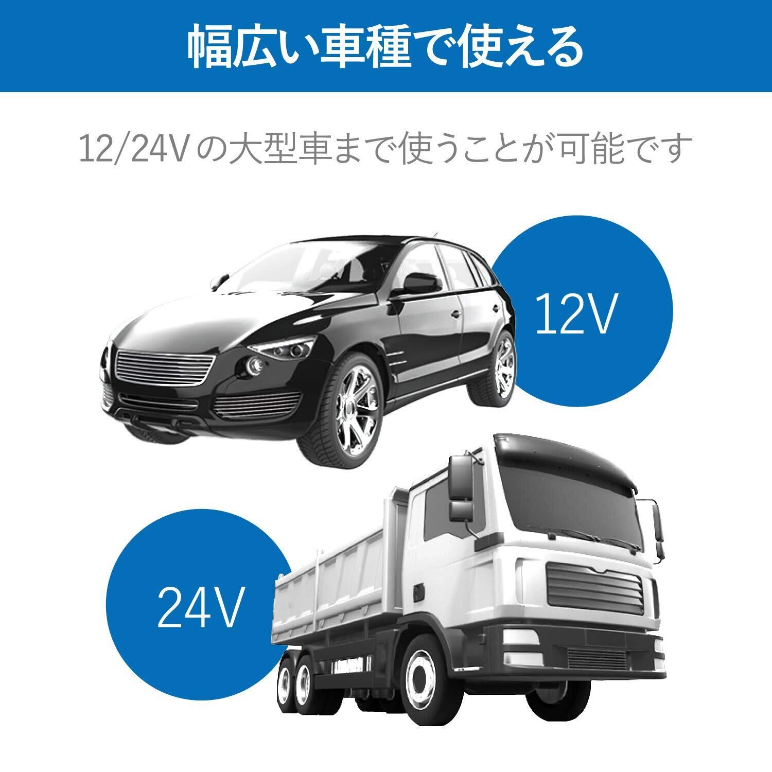 ■普通車はもちろん、トラックなどの大型車でも使用できる12V/24V入力対応です。