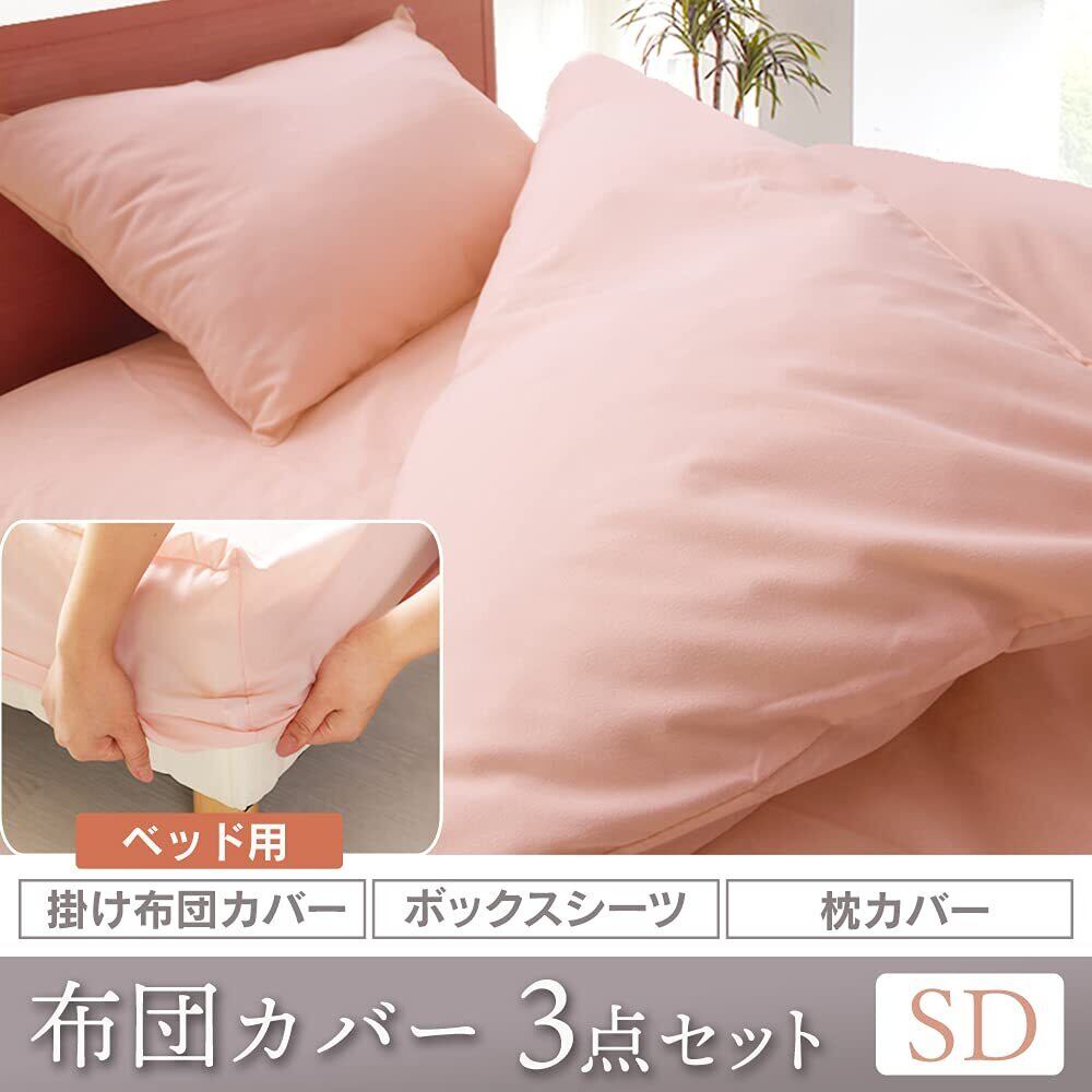アイリスプラザ シンプル寝具カバー3点セット セミダブル さらりと心地よい肌触り なめらかピーチスキン加工 ズレにくい全周ゴム式 シワになりにくく長く使える 洗い替え用にも (掛け布団カバー ボックスシーツ 枕カバー) 無地 ピンク