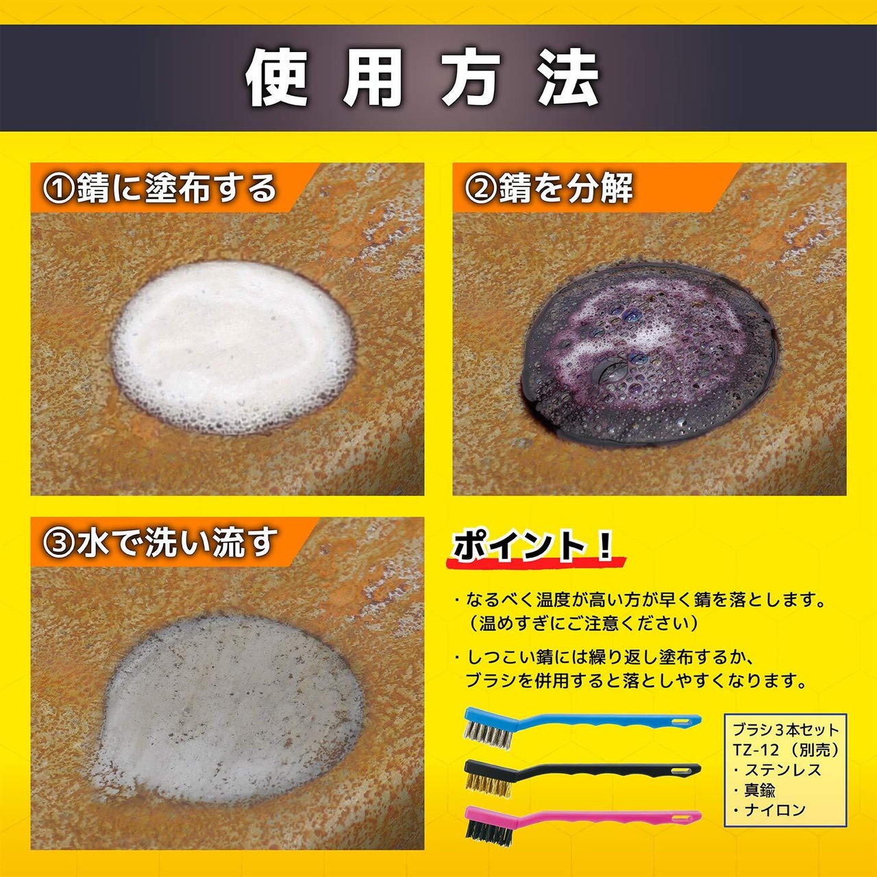 重度のサビには何度か塗布してください。