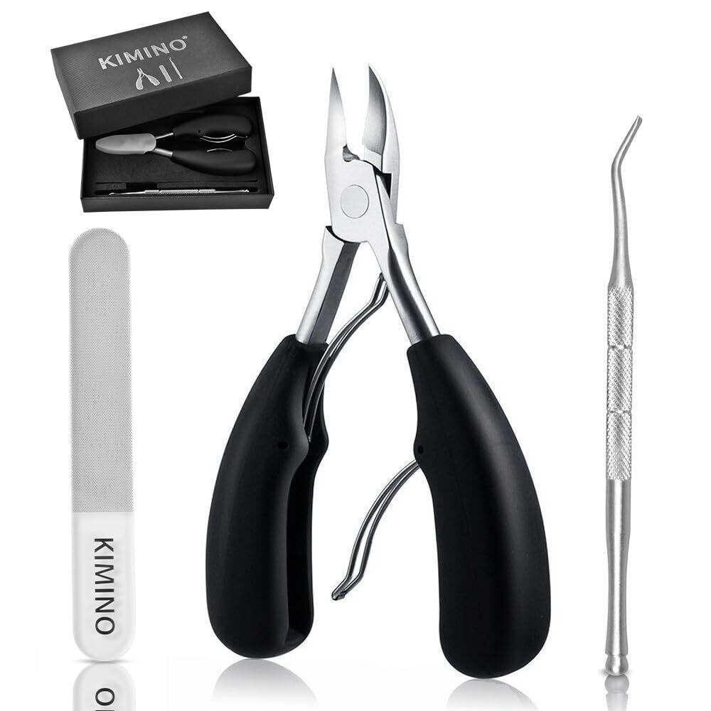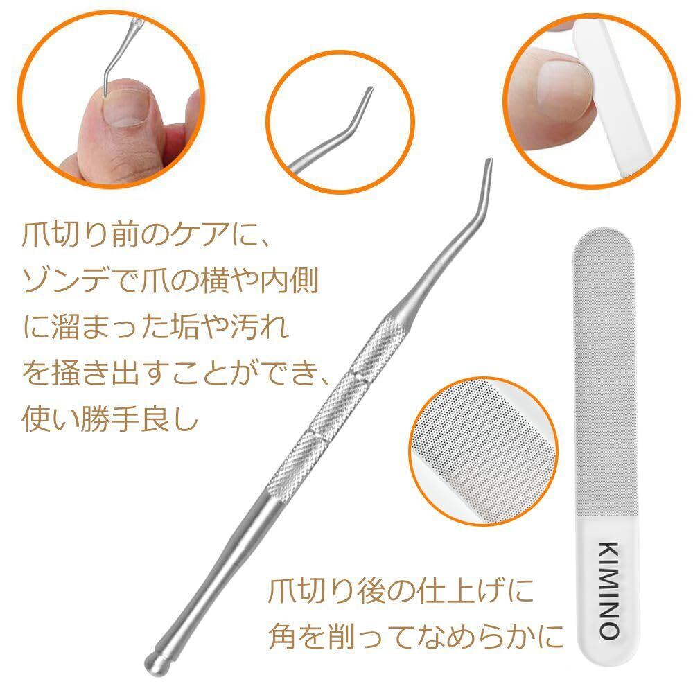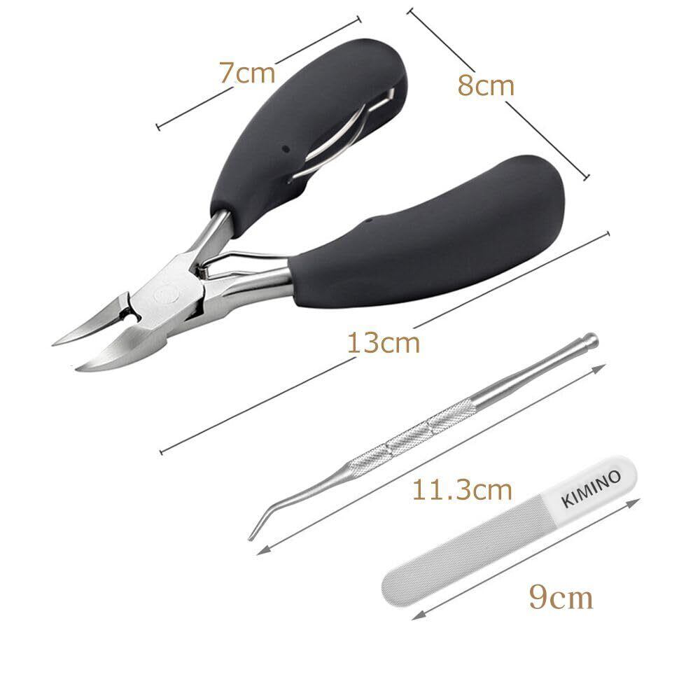 KIMINO 爪切り ニッパー式 ステンレス製 滑り止め 厚い爪/変形爪/巻き爪に最適 爪やすり ゾンデ付き【3点セット】