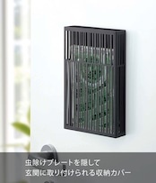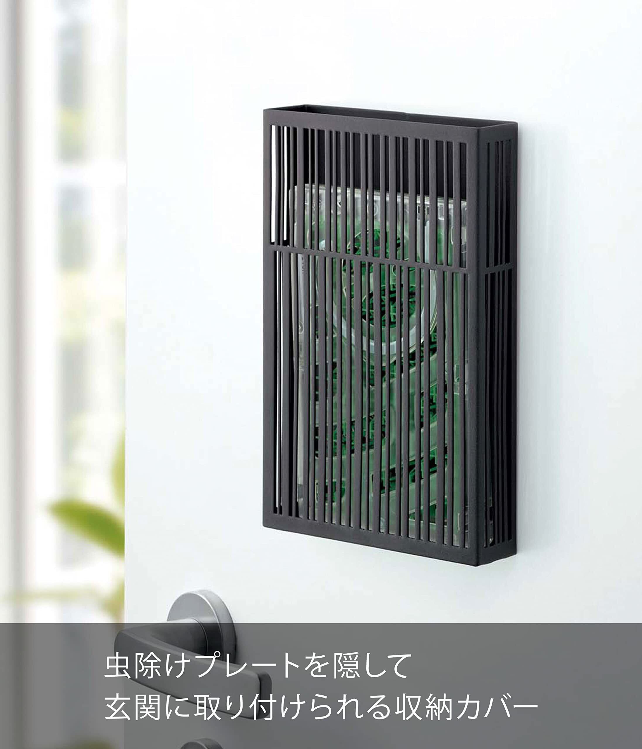 虫除けプレートを隠して玄関扉にマグネットで取り付けられる収納カバーです。