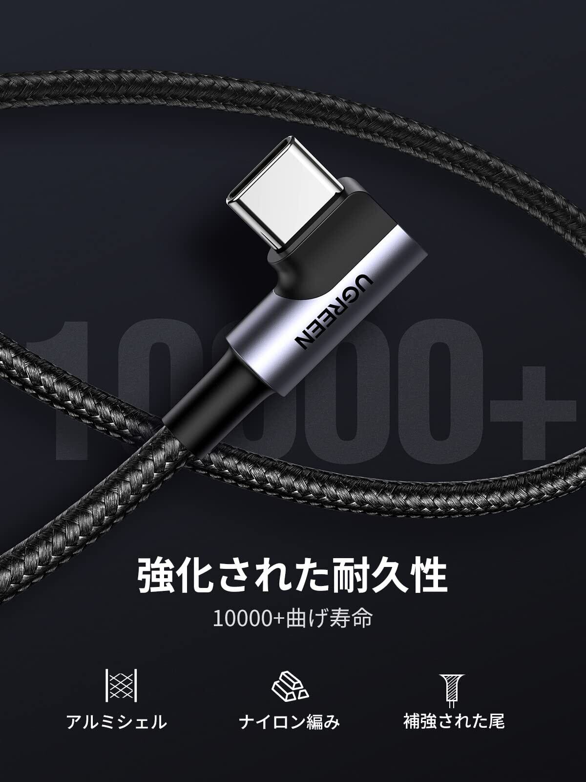 UGREEN USB Type C ケーブル USB A to USB C ケーブル L字ナイロン編み 3A急速充電 Quick Charge 3.0/2.0対応 56Kレジスタ実装 iPhone15/Galaxy S24/Pixel/Google/Xperia/LG等対応等対応 (2m)