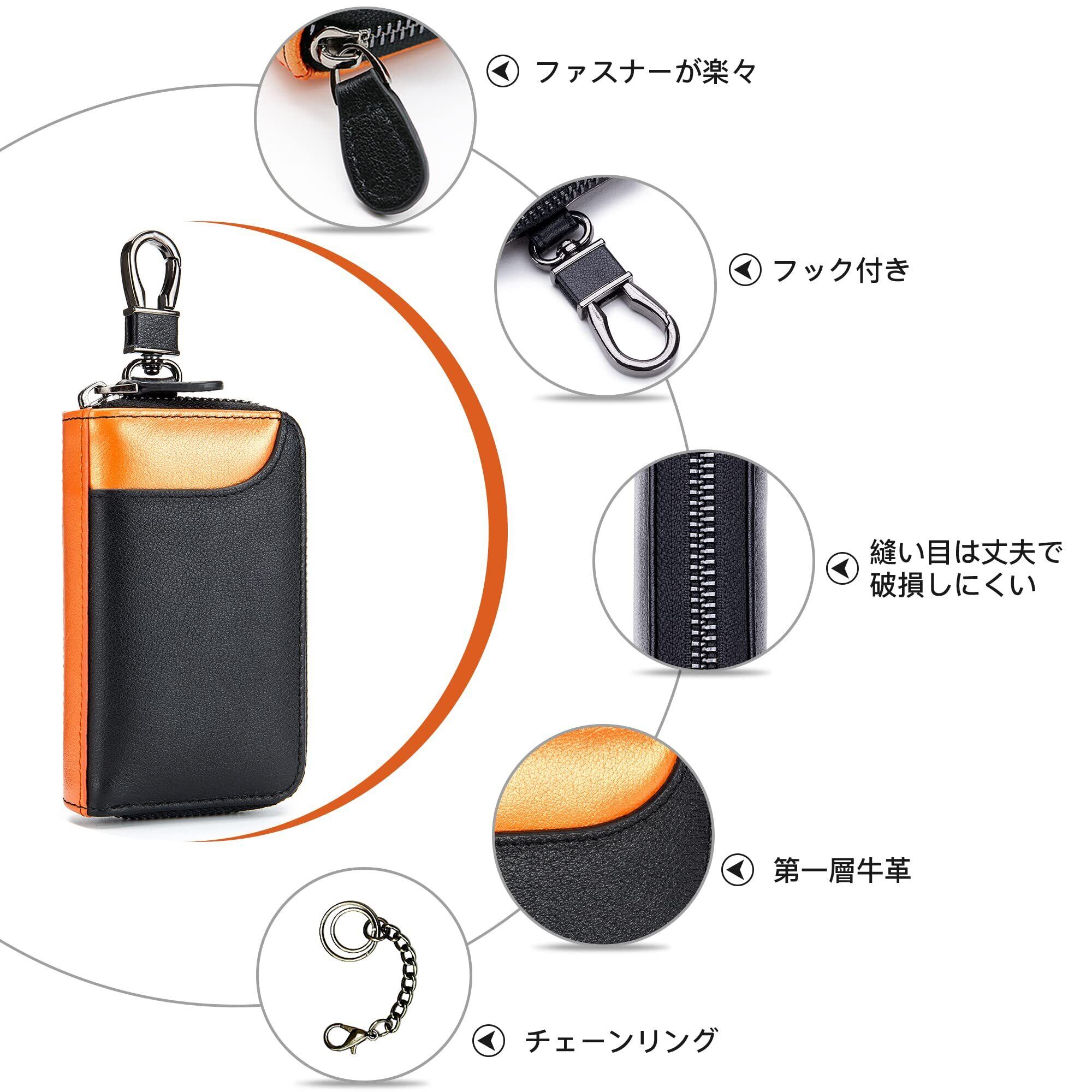 【上質な第一層牛革】牛革の最表面の皮を使用したキーケース。本革の質感、タイトな牛革、素晴らしい光沢、強い靭性と通気性があるもので。より耐久性があり、より快適な感触、より上品な味があります。粗悪な革製品とは一線を画す上質な質感をお楽しみください。