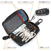 【大容量収納】◆カード6枚&鍵7本/8本 ●6連キーフック×1 ●外側カードポケット×2 ●内側カードポケット×2 ●+αポケット×2 ●チェーン付きキーリング×1。