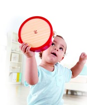 シャンシャンときれいな音で、繊細な子どもの耳にもやさしい木製タンバリン。たたいて、振って、リズムをとって。思うままに体をつかって初めての演奏を楽しもう