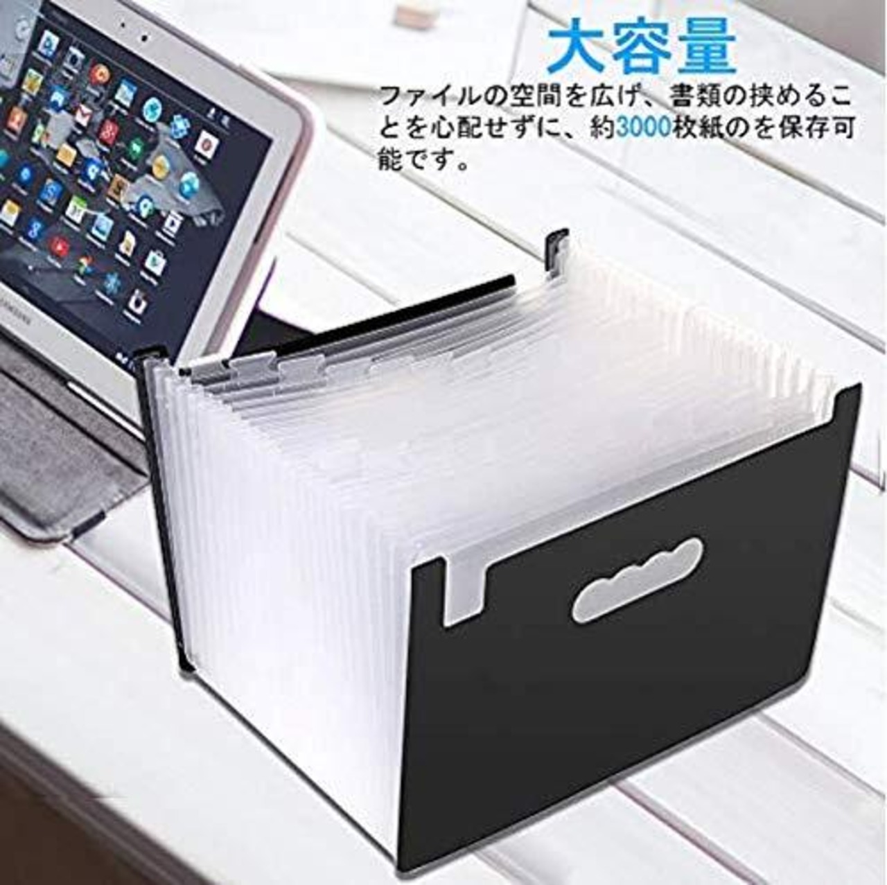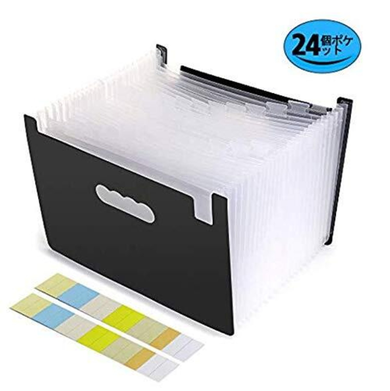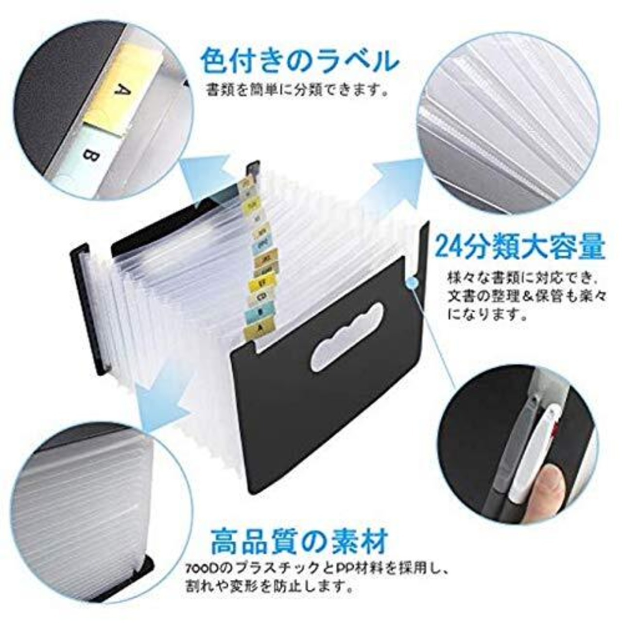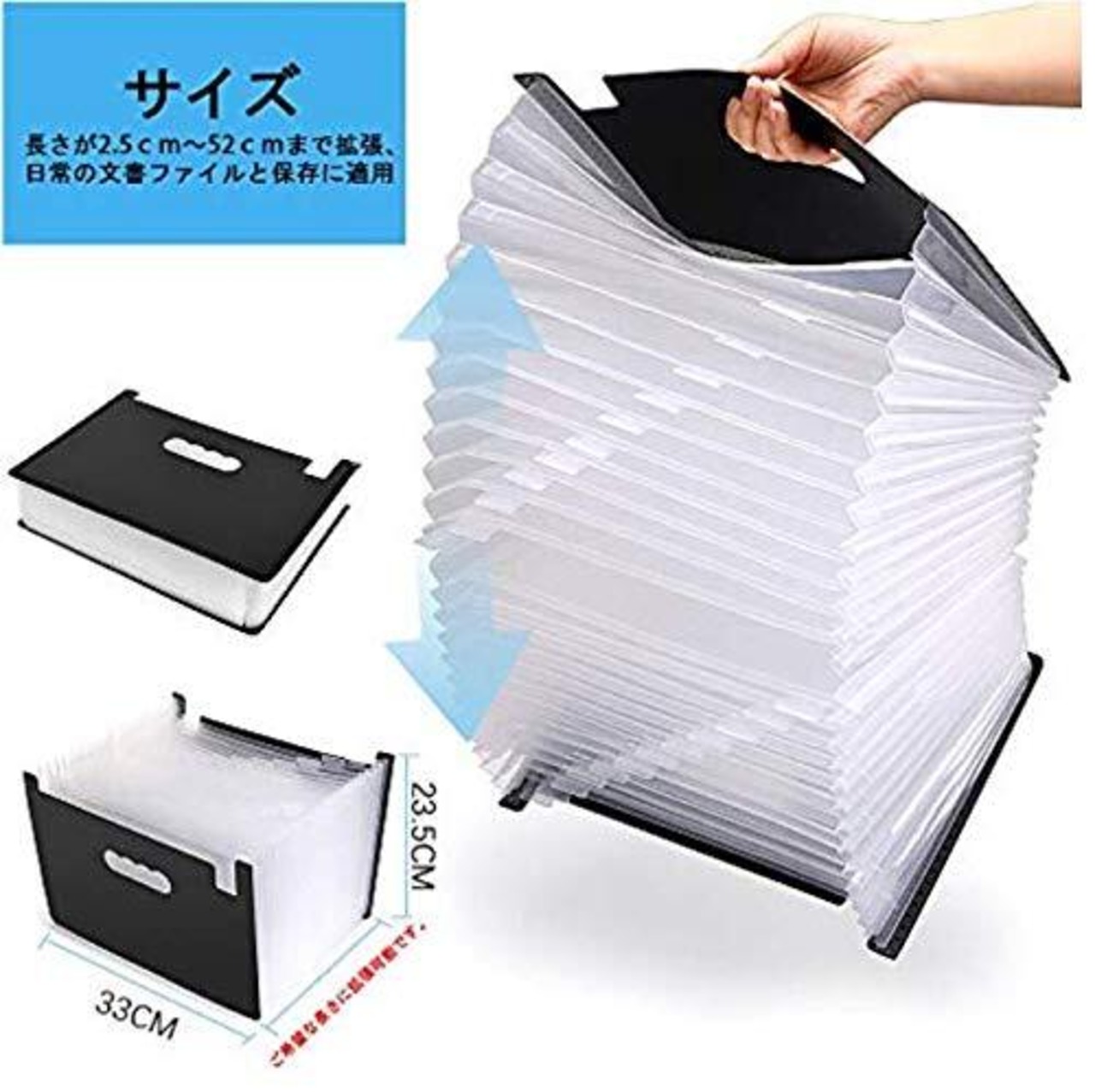 DAMIGRAM ドキュメントスタンド ファイルボックス A4 ドキュメントファイル 書類収納 オルガン式ファイル 収納ケース 伸縮仕様 大容量 書類入れ (横式 24分類(黒+白)