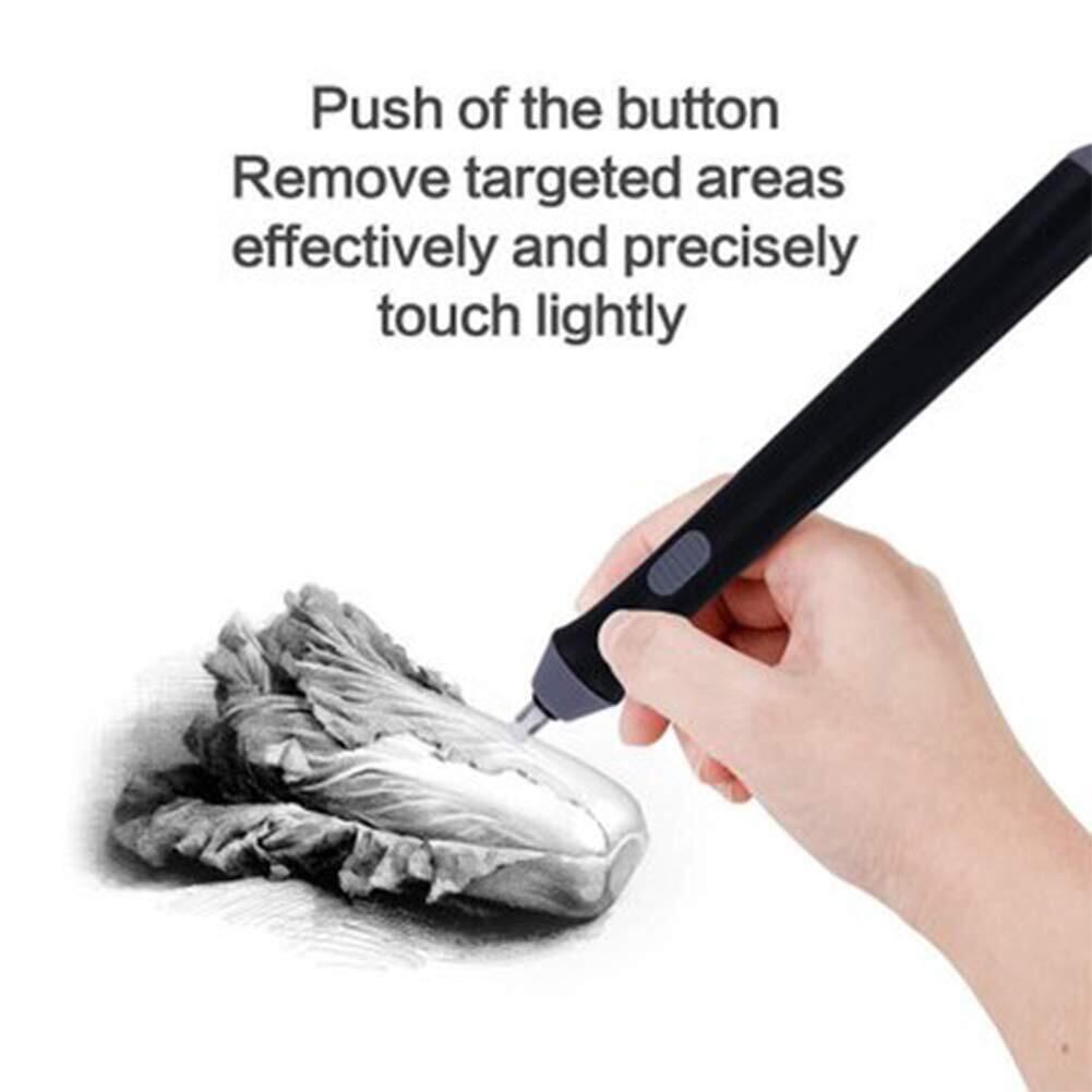 NITIUMI 電動消しゴム 電池式 ピンポイント消せ ハイライト処理 細部処理 字消器 静音 筆形 取り換え用 替え芯22本付属 (12粗い消しゴム 10小さな消しゴム) 図面 楽譜 建築企画 絵画 学生用 文房具 オフィス用品 ブラック