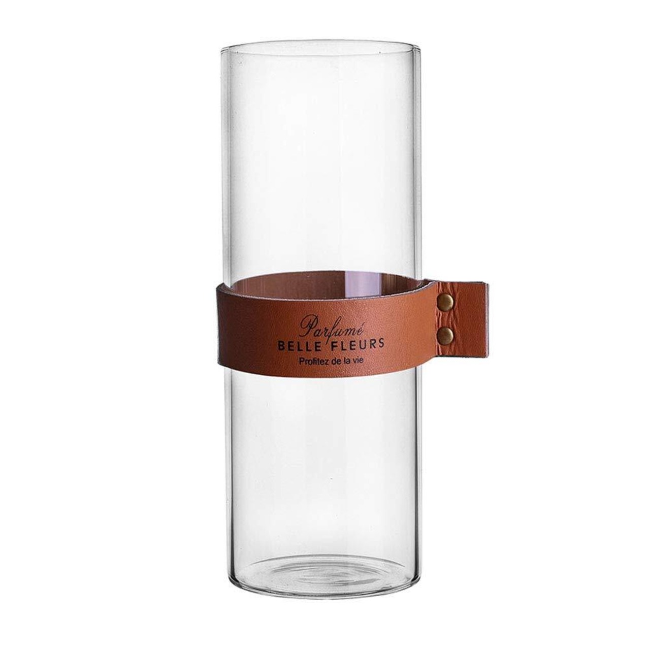 花瓶 ガラス花瓶大きい花瓶 23CM1個入り Fukuka®シンプル花瓶レザーベルト付きフラワーベース ストレート ガラス 筒型 円柱 花びん ガラスボトル (ブラウン)