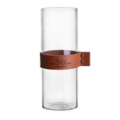 サイズ:9*9*23CM 重量:約450g カラー:クリア、レザーベルト色:ブラウン 素材:ガラス フラワーベース/レザーラベル 各1点