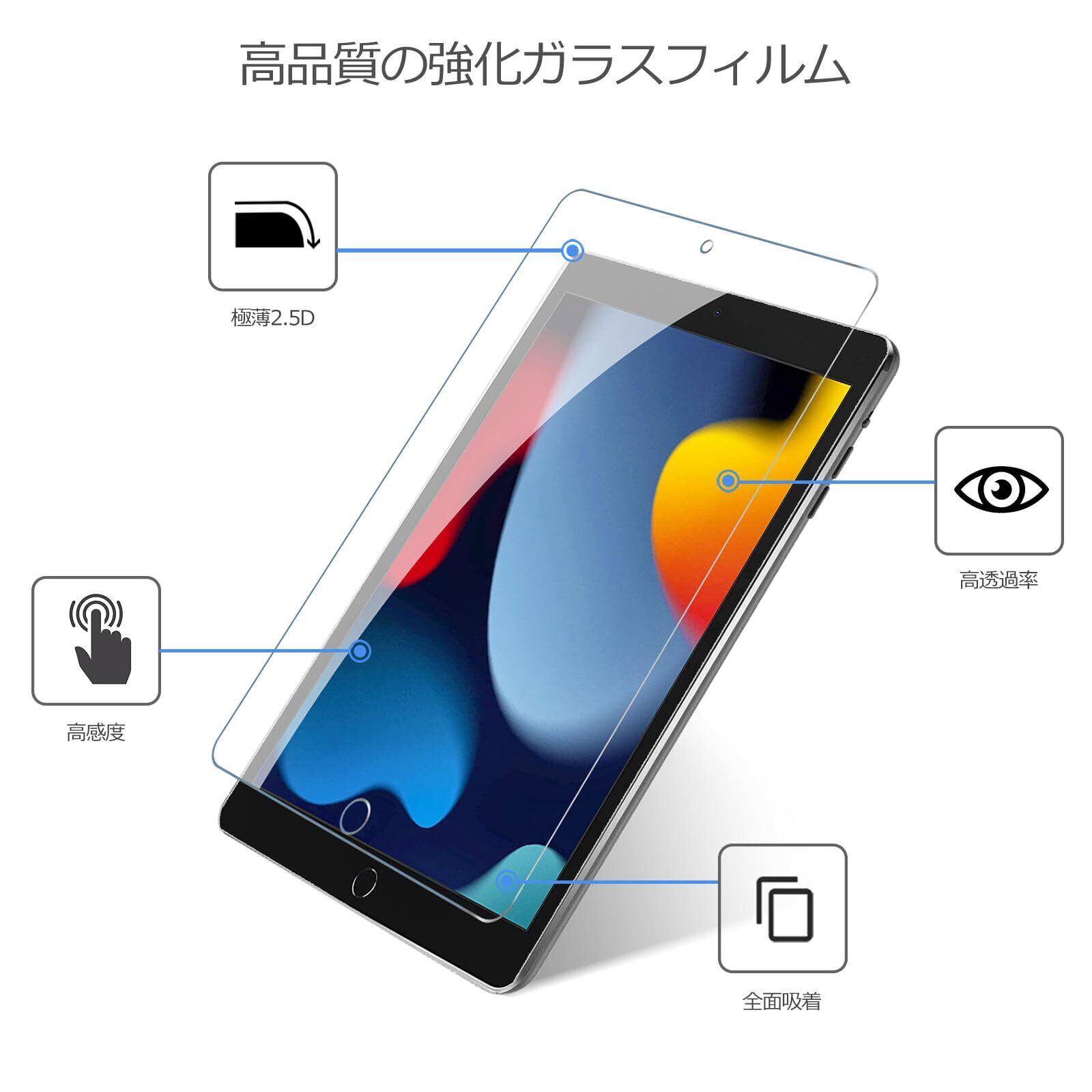 ProCase iPad 9世代 フィルム 10.2インチ 8世代・7世代適用 全面吸着タイプ 硬度9H クリア強化ガラス 貼る工具付き (2枚)