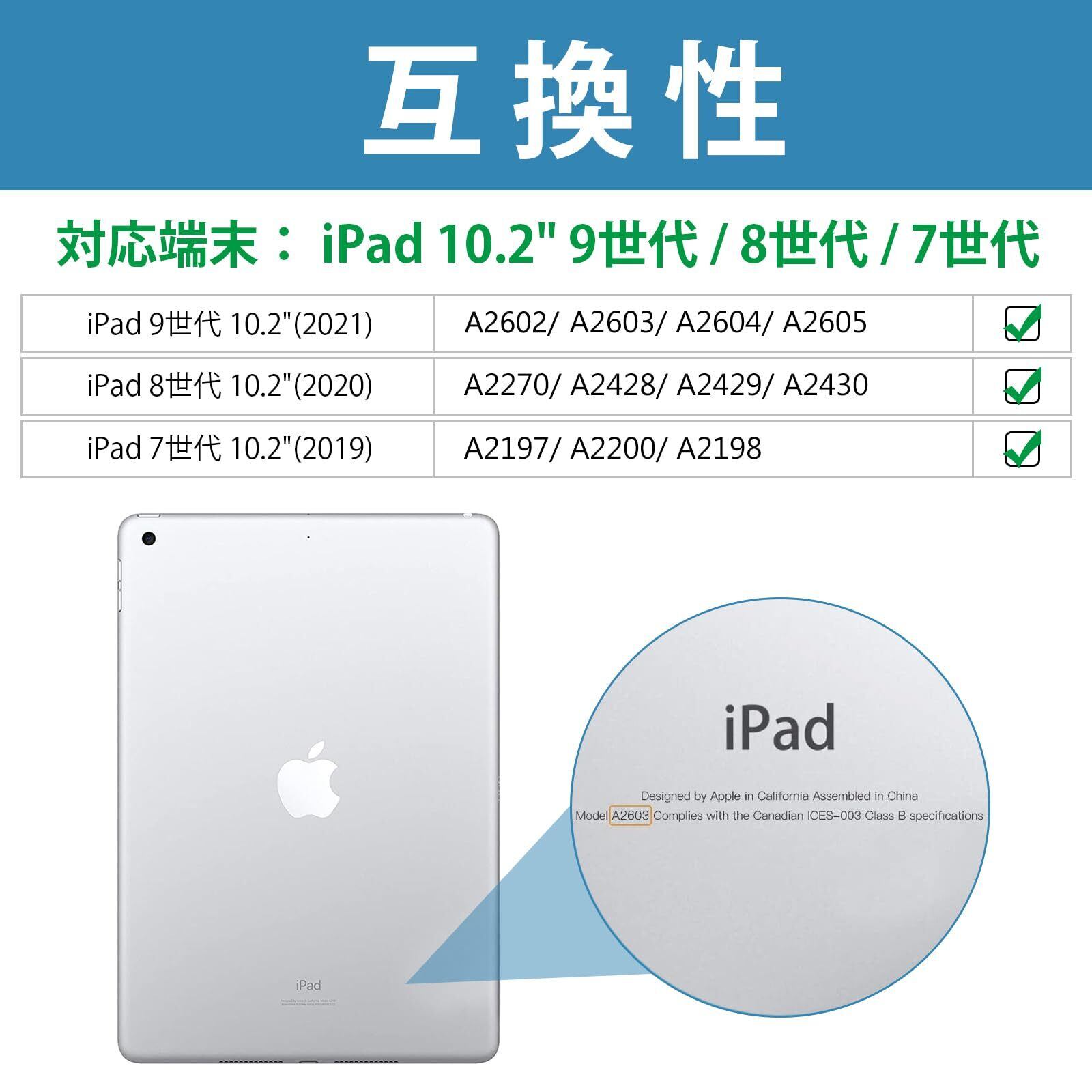 対応端末:iPad 10.2" 第9世代 2021 (A2604 A2605 A2603 A2602)/ 第8世代 2020 (A2270 A2428 A2429 A2430)/ 第7世代 2019(A2197 A2198 A2200)のみ、その他のデバイスに適用されません。ご購入前、ご設備のモデル番号をご確認いただきます。