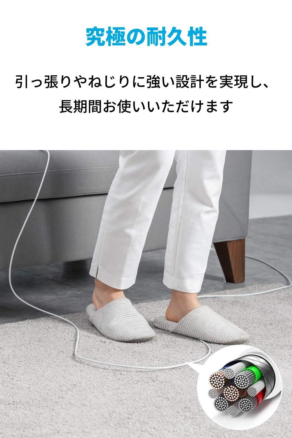 折り曲げに強い:25,000回以上の厳しい折り曲げテストにクリアしており、究極の耐久性を実現しました。また、Anker PowerLine III USB-C & USB-C 2.0 ケーブルは、PowerLineシリーズが持つ高耐久性を残しつつ、シリーズ史上最も細い構造に仕上げました。