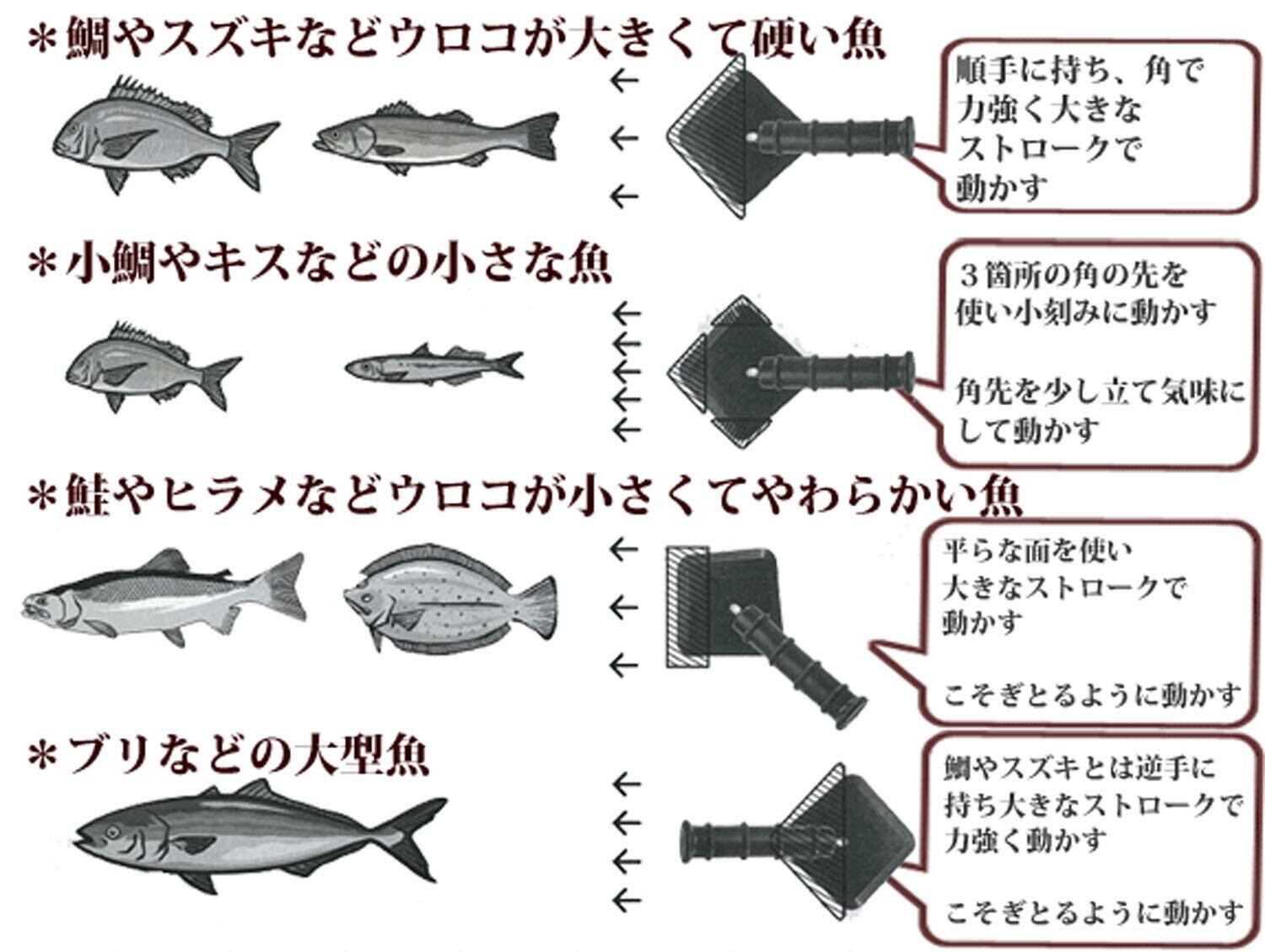 ウロコが飛び散らず、腸炎ビブリオなど菌の飛散を防ぐ