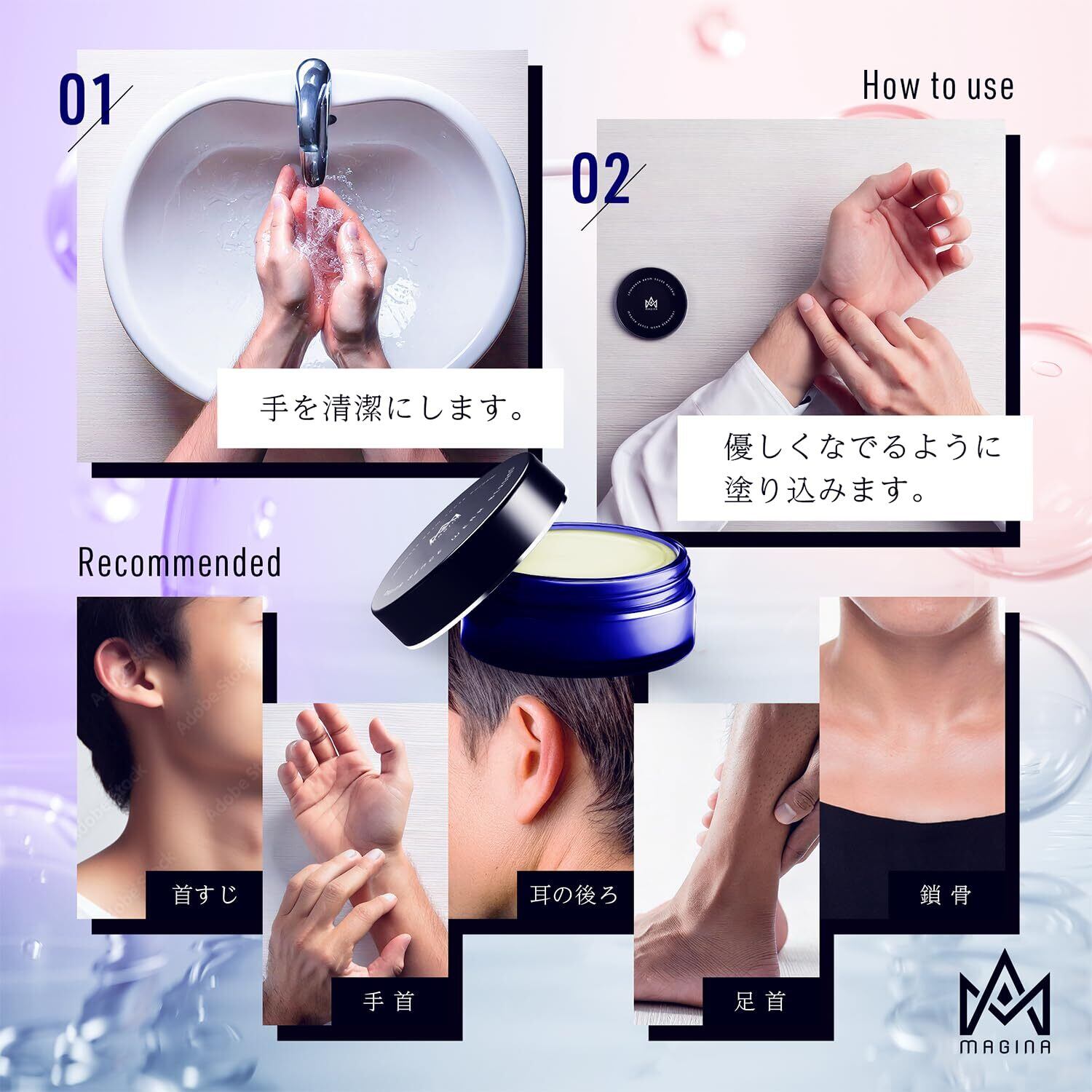【使いやすさにこだわった練り香水】指先で1〜2回軽く塗るだけで適量使用可能。コンパクトなサイズで持ち運びにも便利で、約2〜3ヶ月継続使用できる実用性も魅力。ビジネスからデート、合コンまで、様々なシーンで活躍するアイテムです。