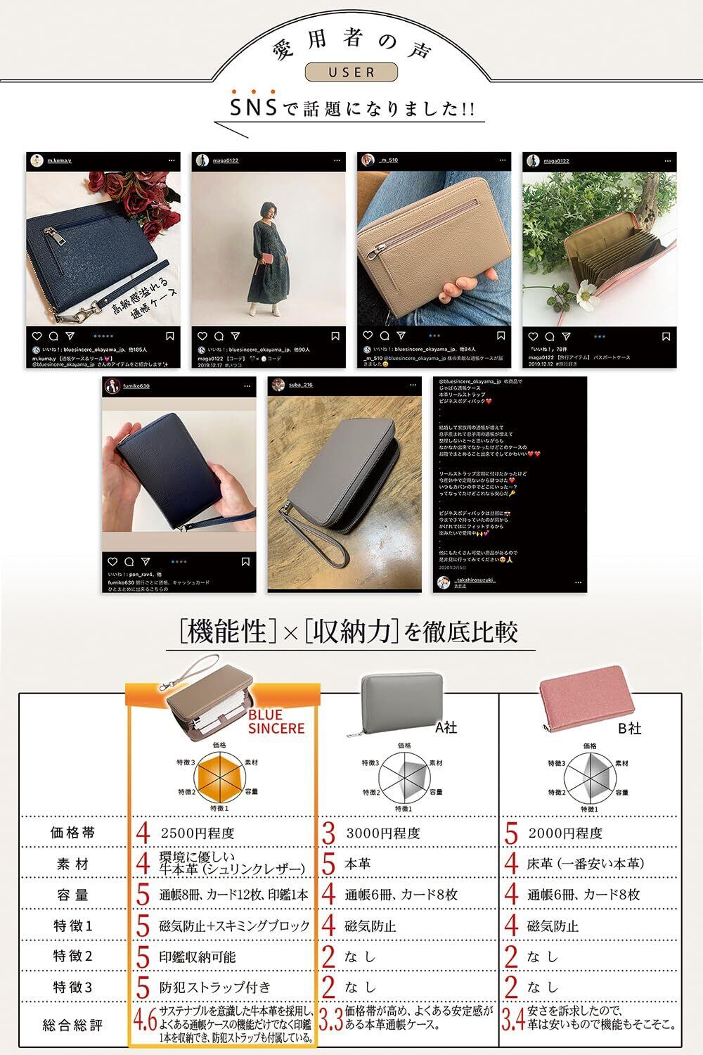 【 銀行のついでにお買い物も行けるんです 】 休日前、銀行へ行くついでにちょっと買い物へ 給料日であれば、帰りにご褒美でコンビニスイーツ! 仕事の休憩時間にちょっと銀行で記帳したい! なんて思うことありますよね。 たったそれだけなのに、普段使いの大きな財布を一緒に持っていくのも面倒ですよね? そんな悩みを解決するために お札やレシートを20枚程度、折らずに入れる事ができるスペースがあります。 外ポケット付きなので小銭も1000円程度であれば、ゆったりと入るので 細かい支払いにもしっかり対応できます。 通帳が入るのは当たり前、BLUESINCEREはお客様のご希望以上をお届け出来るよう 理想の形を追求し続けています。 .