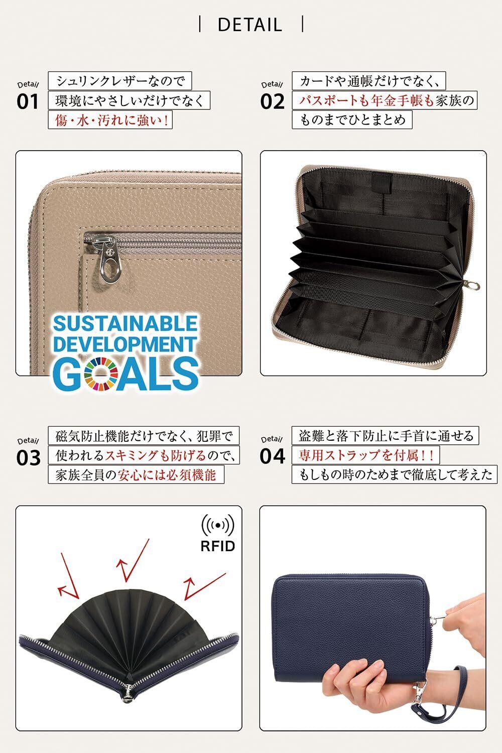 【 盗難防止もしっかり対応 】 大事な通帳やカードがたくさん入っているから ケースだけで持っていくのは不安に思いますよね? カバンに入れていても、もしかして落としてしまうかも・・・ 銀行の待ち時間にスリにあってしまったらどうしよう・・・ 制作時の打ち合わせで一人の女性社員から上がった声です。 機能だけを追求するだけではダメ。 そう気づいた私達は安心して使ってもらえるよう デザインを悪くせず、防犯対策出来る工夫を考えました。 付属のストラップを腕やカバンに付けるだけで 安心してお使いいただけます。 .