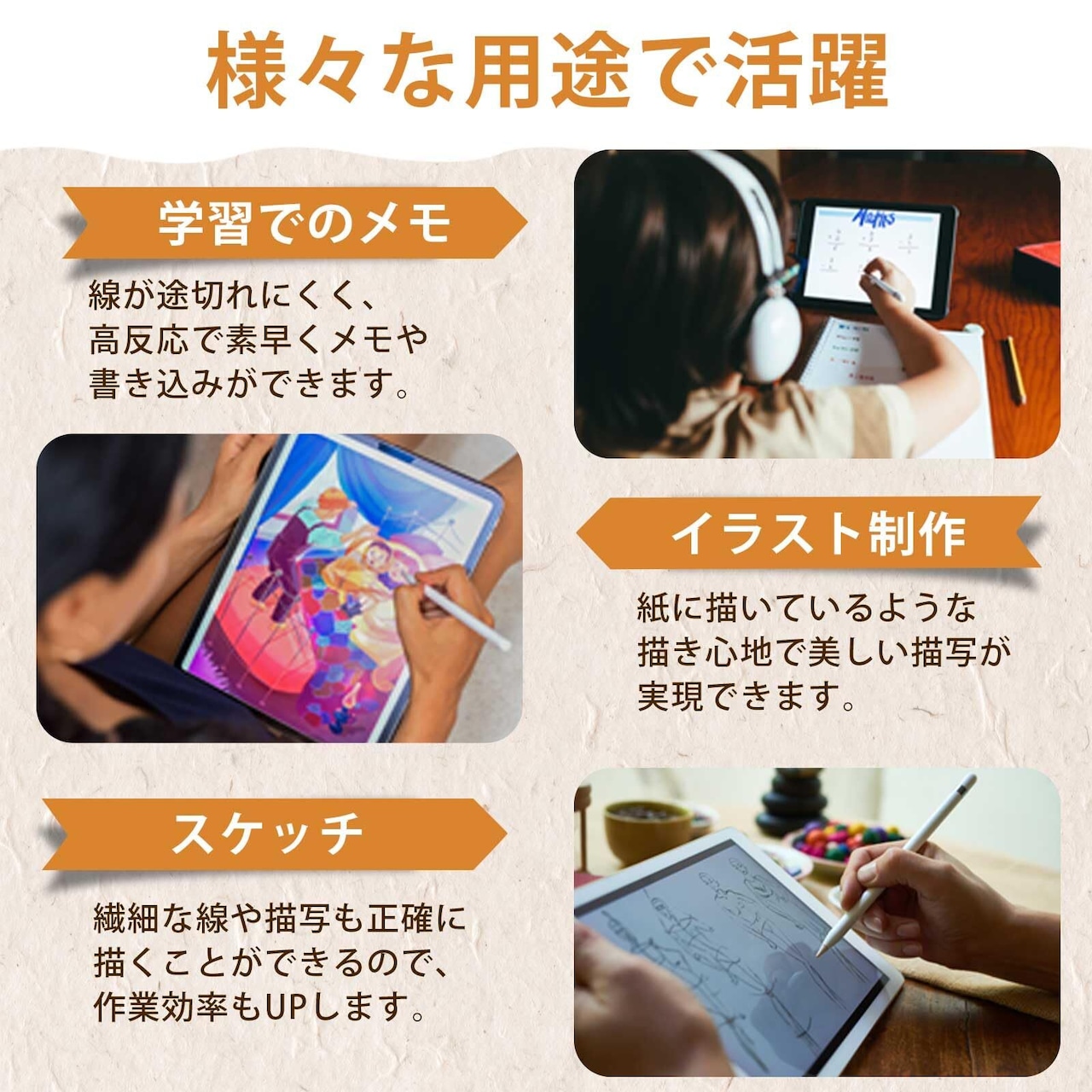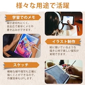 【ケント紙のような書き心地を忠実に再現】 特殊表面形状デザインによりケント紙に鉛筆で描いた時の触感を実現します。【ペン先の磨耗を70%低減】 最新素材を採用しや表面特殊加工によりペン先の磨耗を70%低減させるため、タッチペンを長く使用できます。※当社旧モデルと比較。