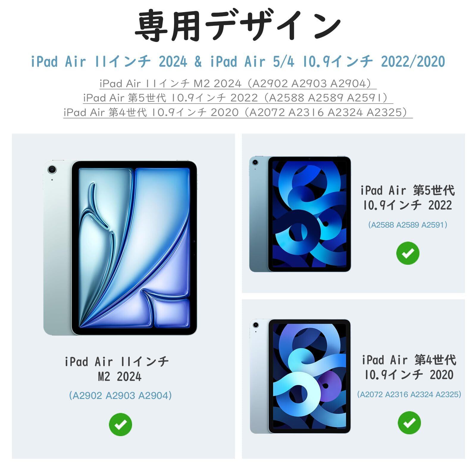 「対応機種」2025年発売のiPad Air 11インチ(M3)(モデル番号:A3267、A3270)、2024年発売のiPad Air 11インチ(M2)(モデル番号:A2902、A2903、A2904)、2022年発売のiPad Air 5(モデル番号:A2591、A2588、A2589)と2020年発売のiPad Air 4(モデル番号:A2316、A2324、A2325、A2072)に適用します。iPad(A16)第11世代 11インチ、iPad 第10世代 10.9インチ、iPad Air 13インチ、又は他のモデルには適用しません。ご購入前に、機種・モデル番号をご確認ください。ご注意:モデル番号の確認は端末本体の背面カバーにチェックしてください。
