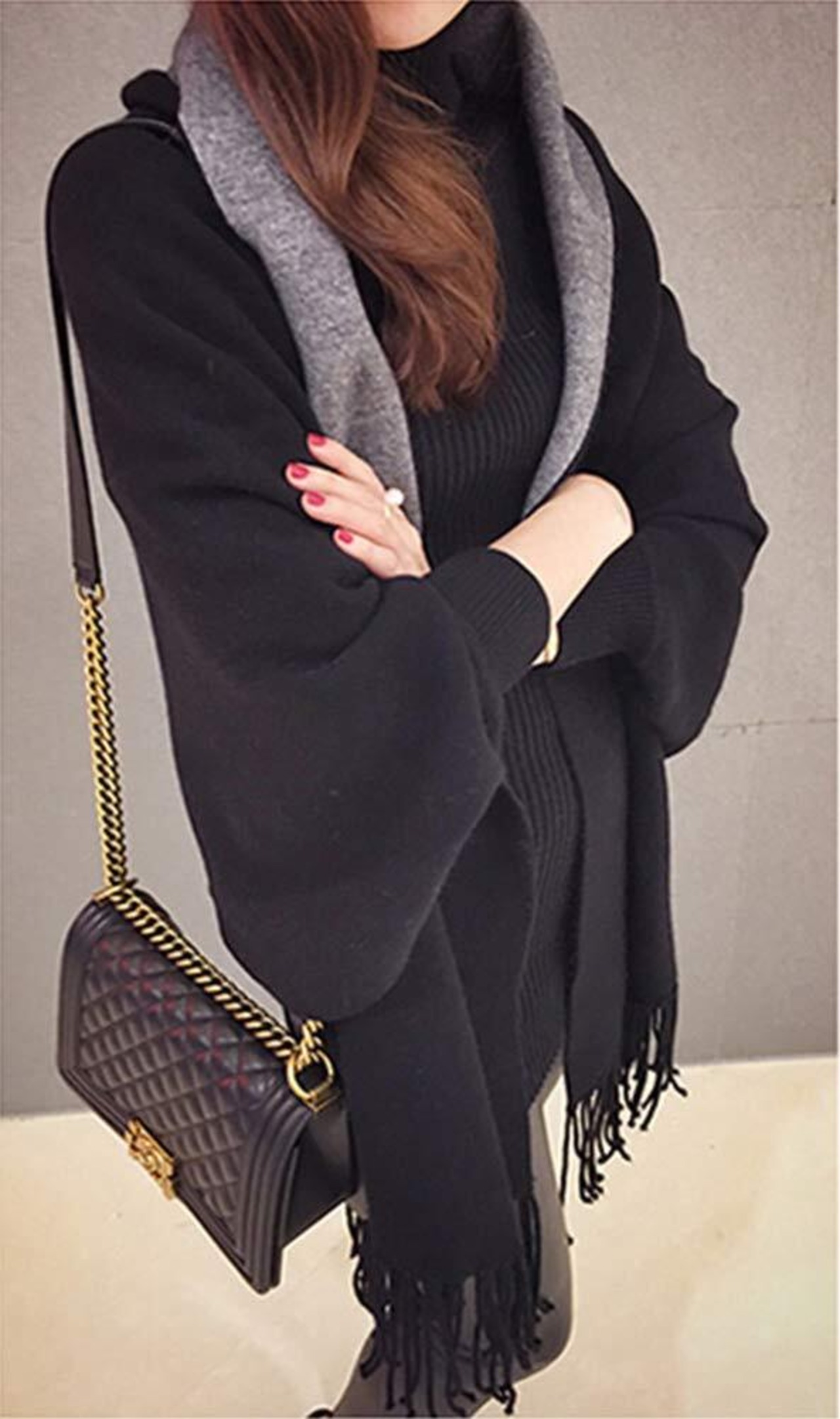 【肌寒い時期の必須アイテム】ストール風だから、もこもこせずにすっきりと羽織れます。サッと羽織りやすいので寒暖調節が難しい時期にピッタリ、デイリー使いには欠かせないアイテムです。