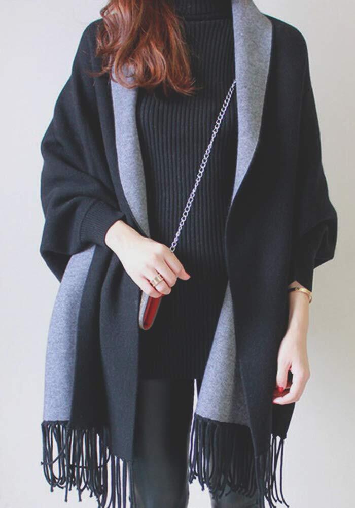 【動くたび、表情豊かに。】シンプルなデザインのストール風カーディガンも、バイカラーでぐっと華やかな印象に◎
