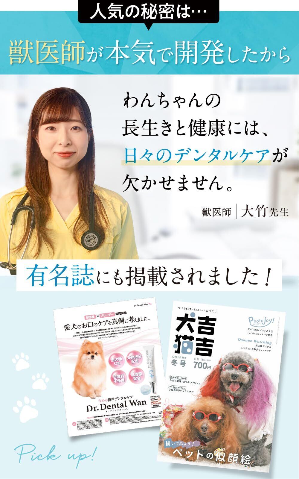 【累計販売数66万本突破!簡単お口ケア】 ①[クリーン]お口の健康を清潔に保つことで健康的に保つ。②[バランス]わんちゃんにとって健康的でキレイな状態を維持。③[ダブルケア]植物エキスのマスキング効果とブラッシング効果(歯磨き)によりしっかり健康と犬のデンタルケアをお届け。