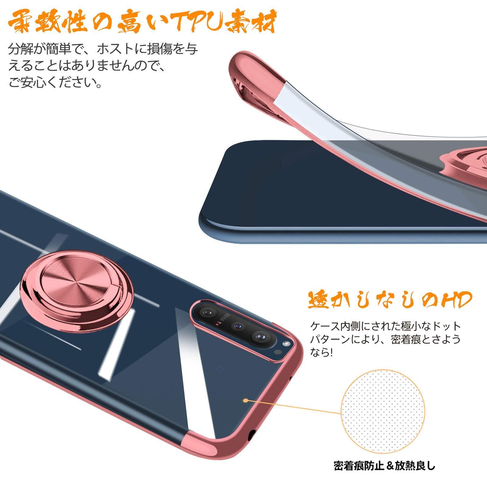 Xperia 5 II ケース SO-52A カバー リング クリア TPU 耐衝撃 透明 メッキ加工 SOG02 スマホケース 一体型 スタンド機能 車載ホルダー ストラップホール Sony エクスペリア5II ケース ローズゴールド