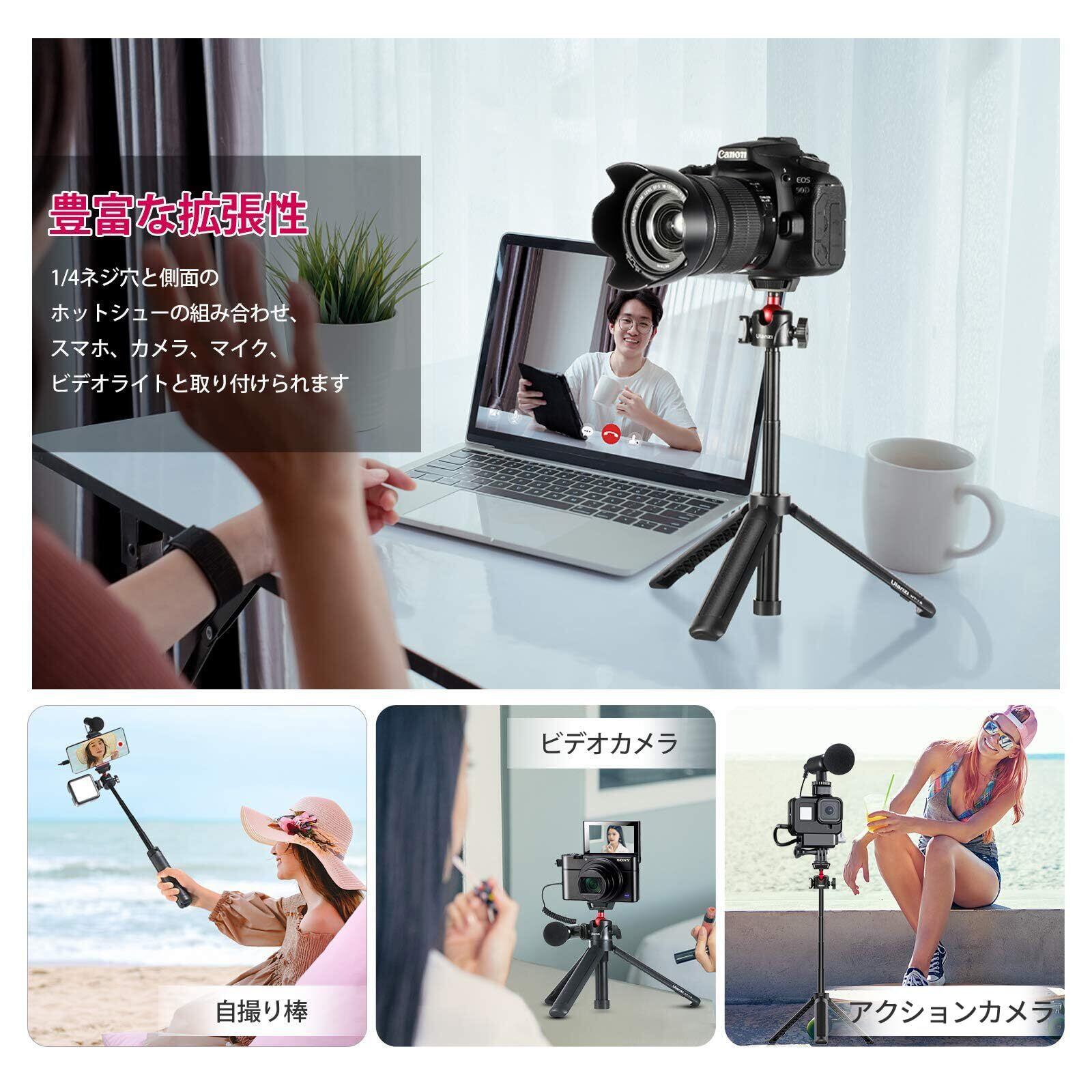 ULANZI MT-16 カメラ三脚 自撮り棒 4段伸縮 卓上 ミニ 自由雲台 360度回転軽量 vlog セルカ棒 折りたたみ 持ち運び便利 ビデオカメラSony A6600/A6400/A6300/A6000/RX100 VII/A7 III/ZV-1/Fujifilm X-T100 X-T200 X-T4/Canon M6/G7X Mark III適用