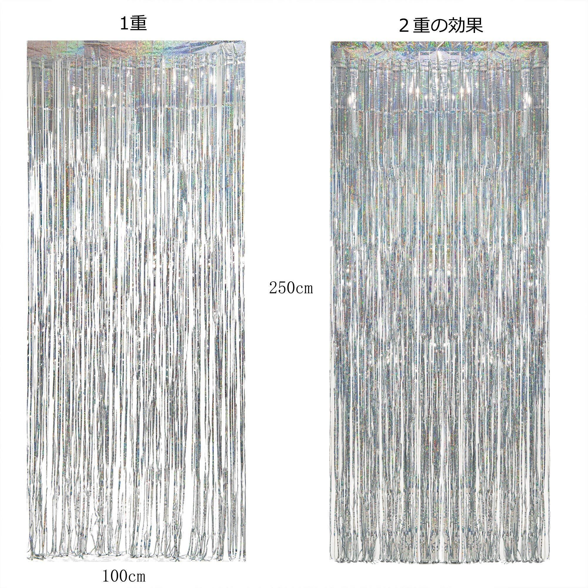 2個セット BRAVESHINE タッセルカーテン キラキラ 背景 明るい光沢 誕生日 クリスマス 飾り付け 100cm*250cm 誕生日 飾り カーテン birthday decorations パーティー デコレーション party decoration (銀色)