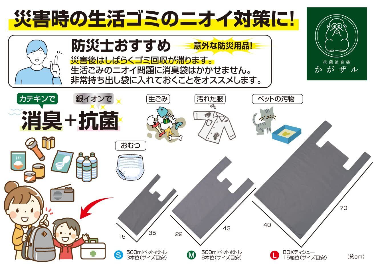 ●特徴:災害時、防災用持ち出し袋に入れておけば、避難時に出たごみを入れておけます。
