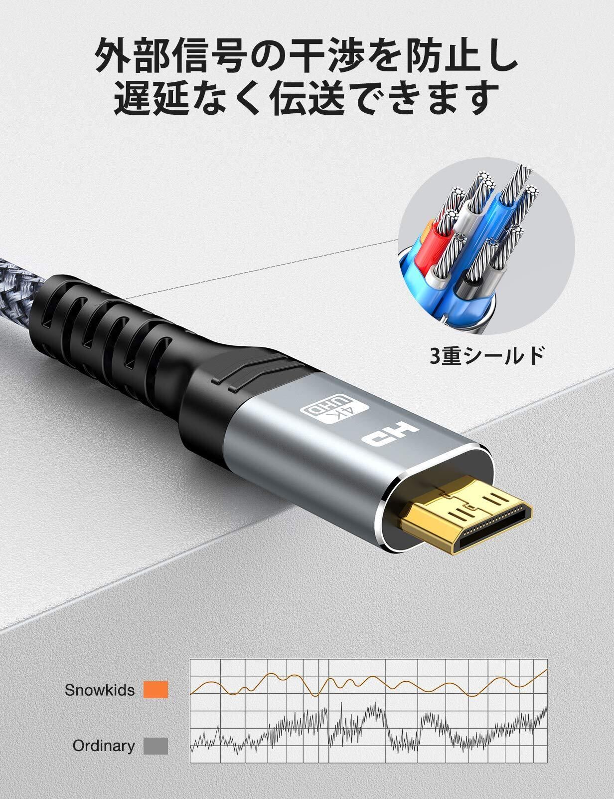 Snowkids Mini HDMI ケーブル 1.8m 4K 60Hz mini hdmi to hdmi 双方向伝送 (タイプAオス-ミニタイプCオス)