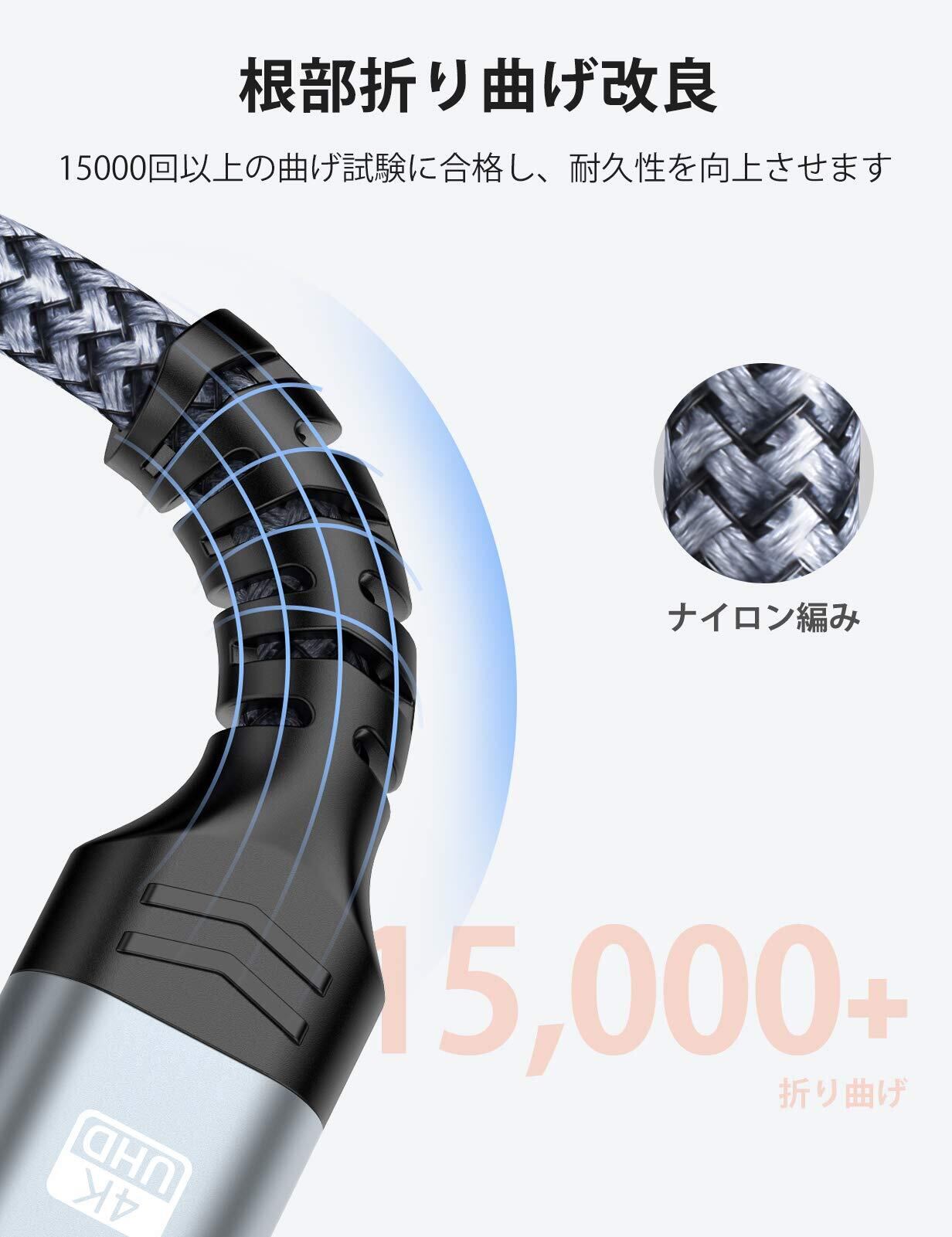 改良のデザイン:mini hdmi hdmi ケーブルは24K金メッキプラグと3重シールドの組み合わせにより、信号劣化を抑え、外部からの干渉を防ぎ、より安定した信号伝送をします。ナイロン編みと根部折り曲げ改良のデザインで、強靭で折れにくい、耐久性を高めます。